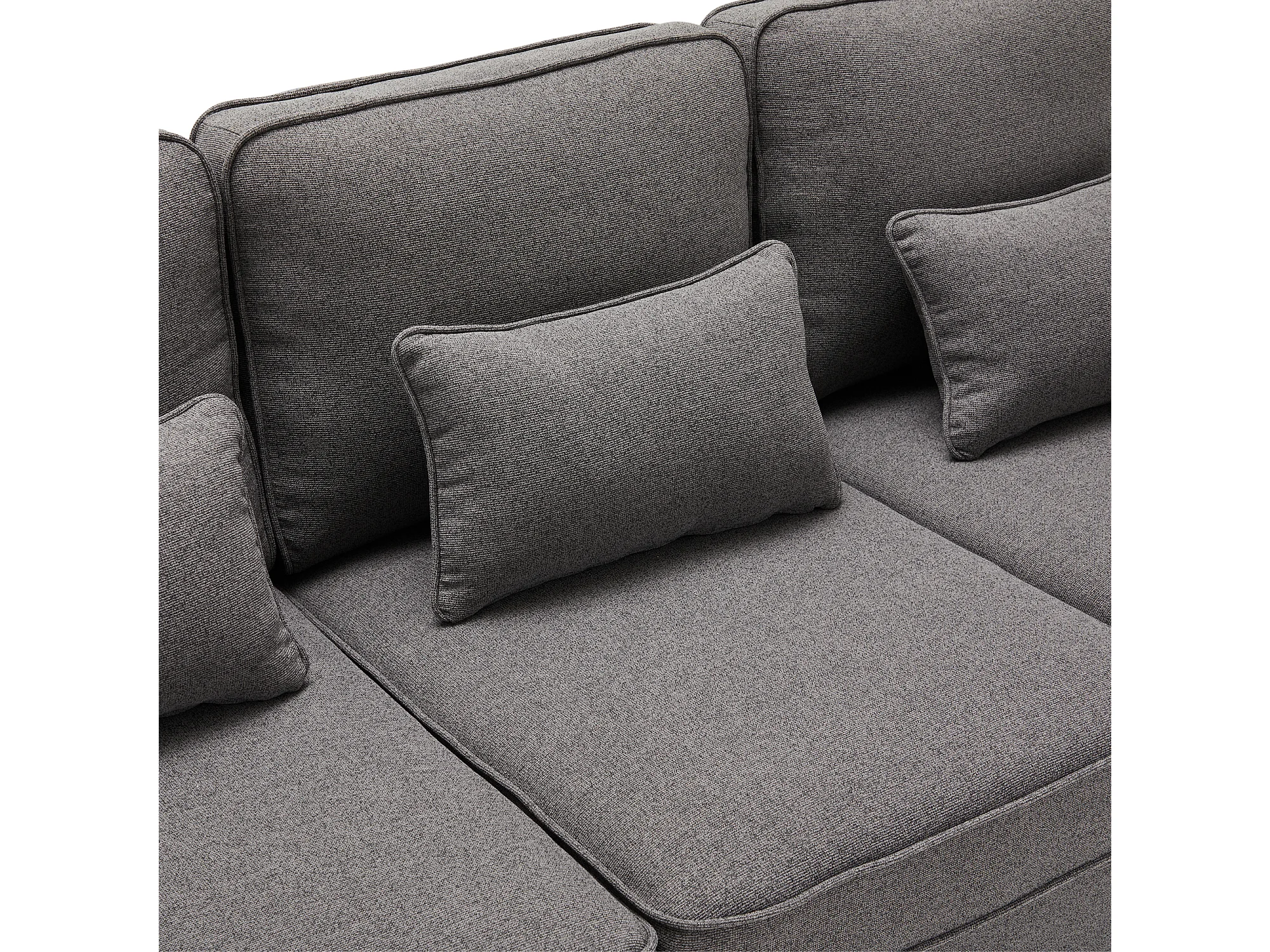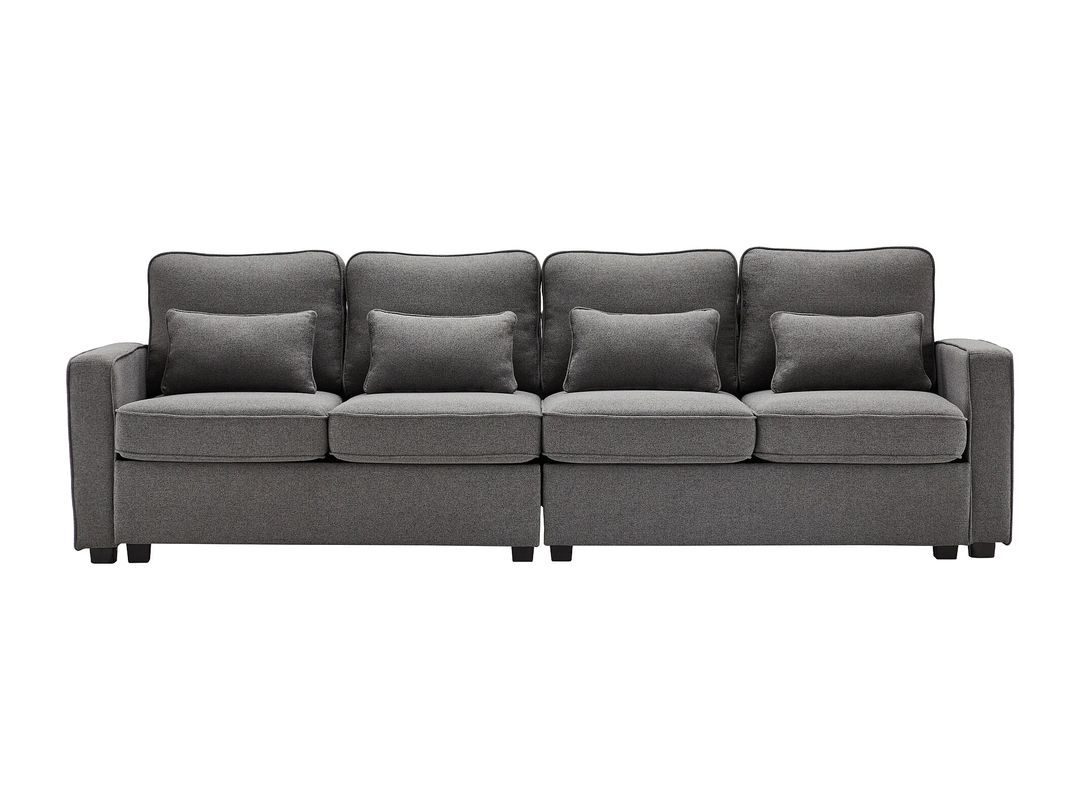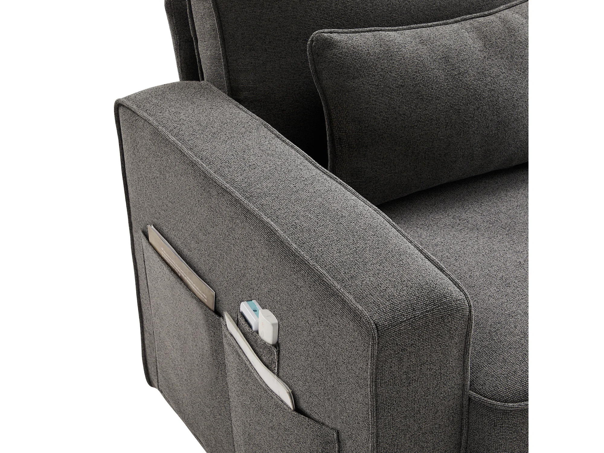 Canapé 4 places avec poches et 4 coussins - Tissu lin gris foncé