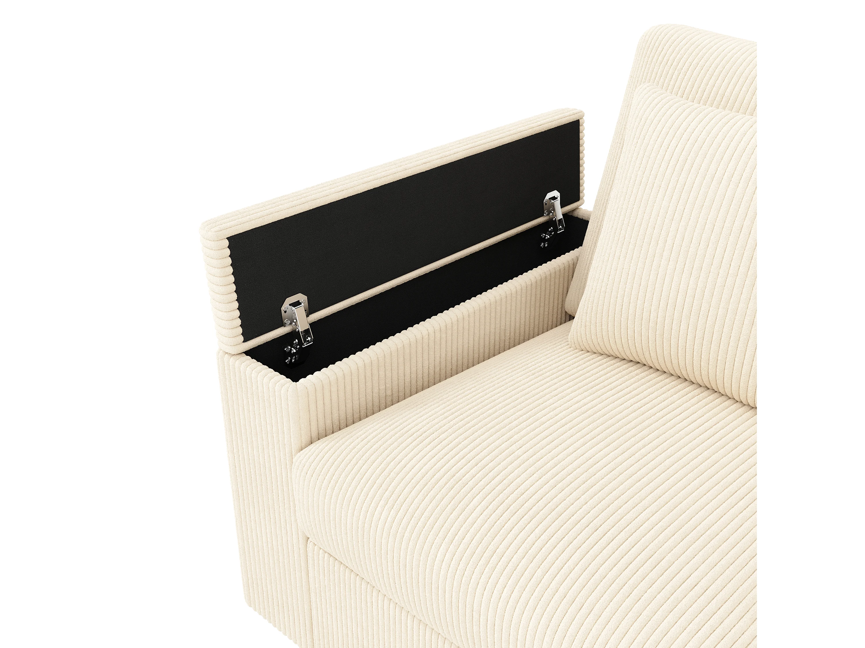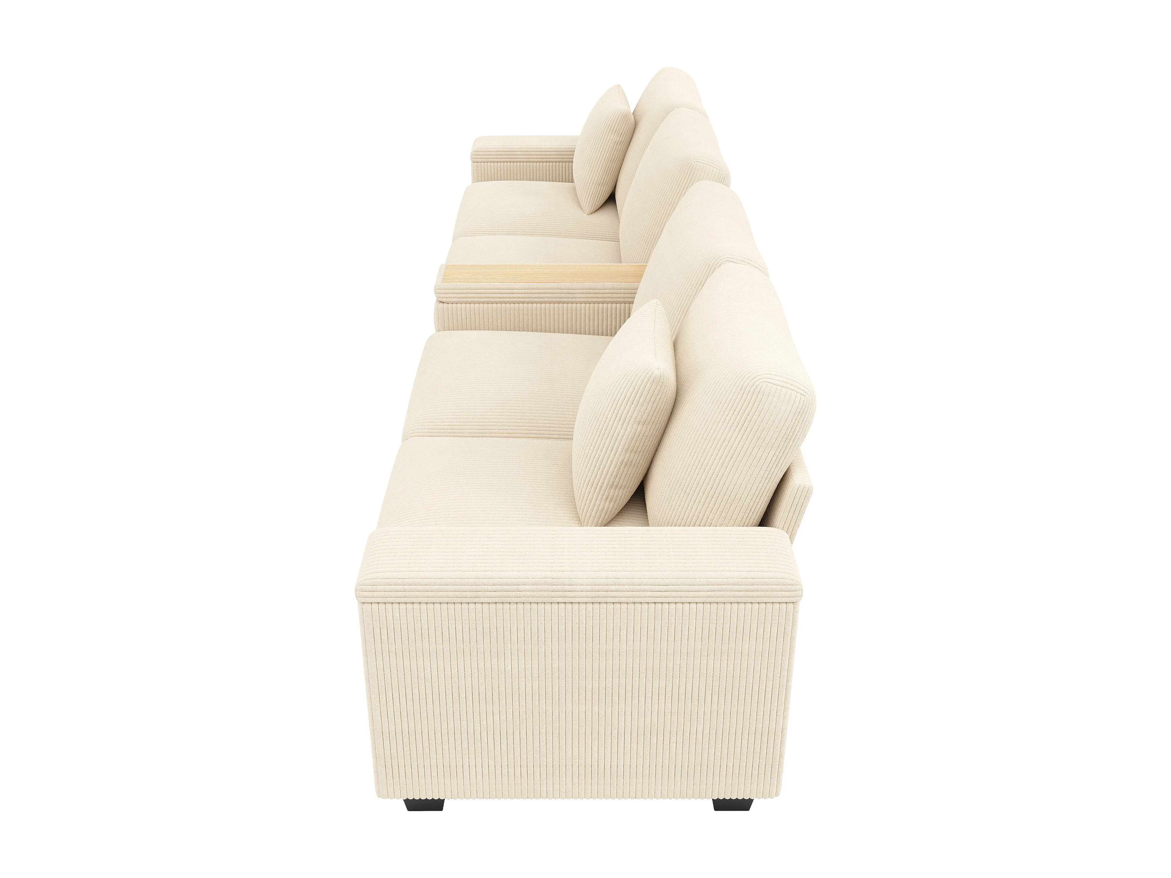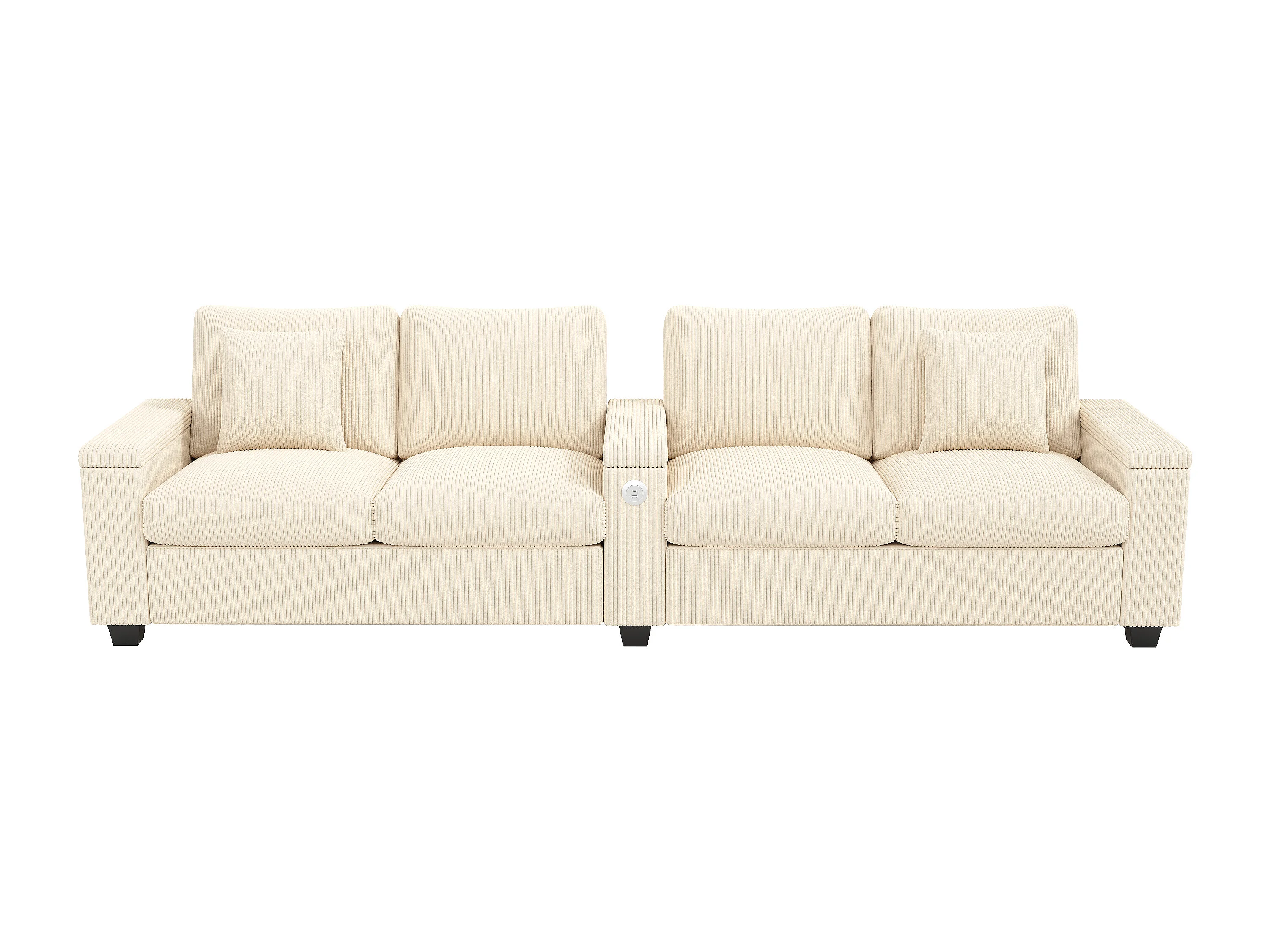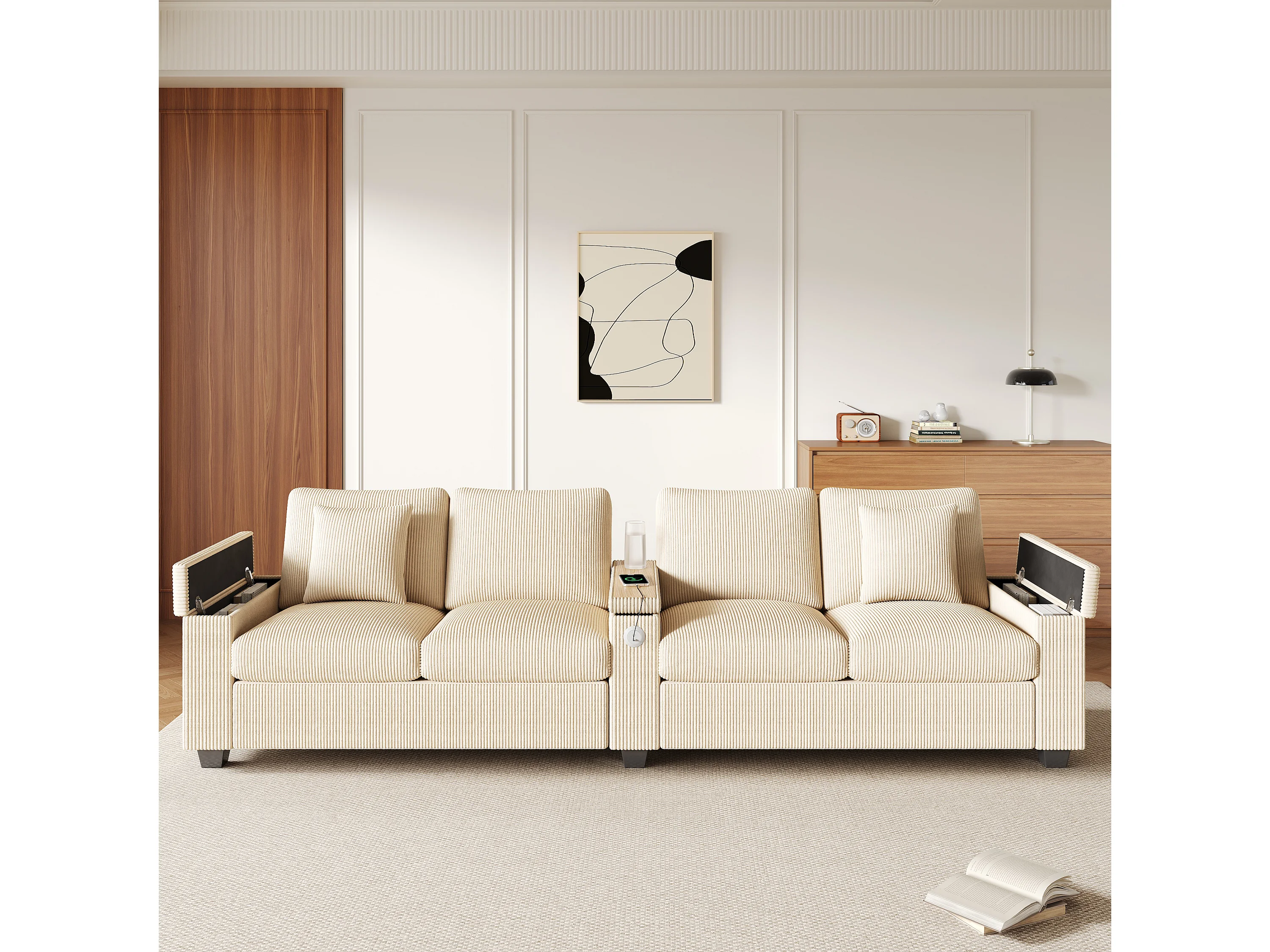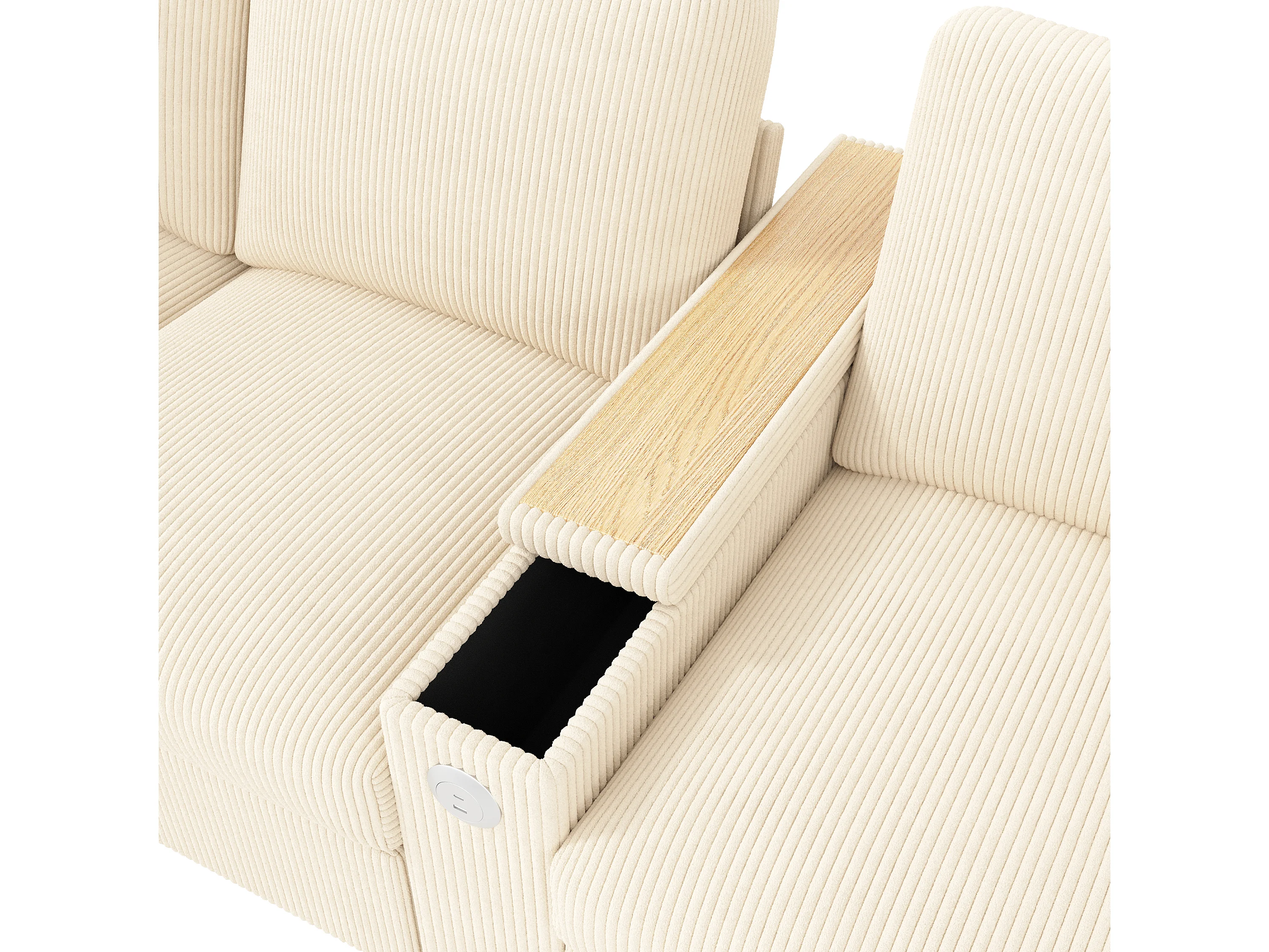 Canapé 4 places avec ports USB/Type-C et rangements - Velours côtelé beige
