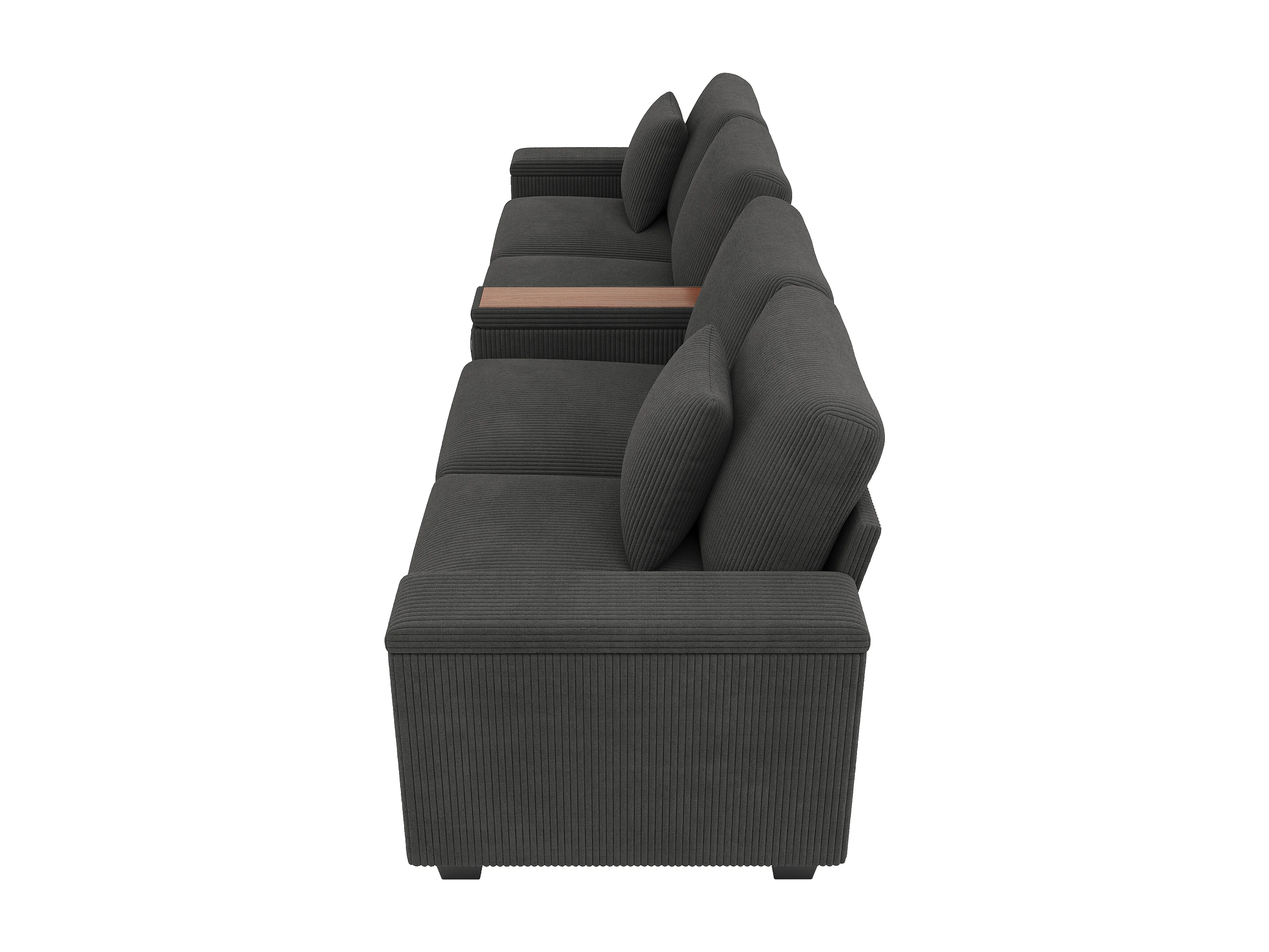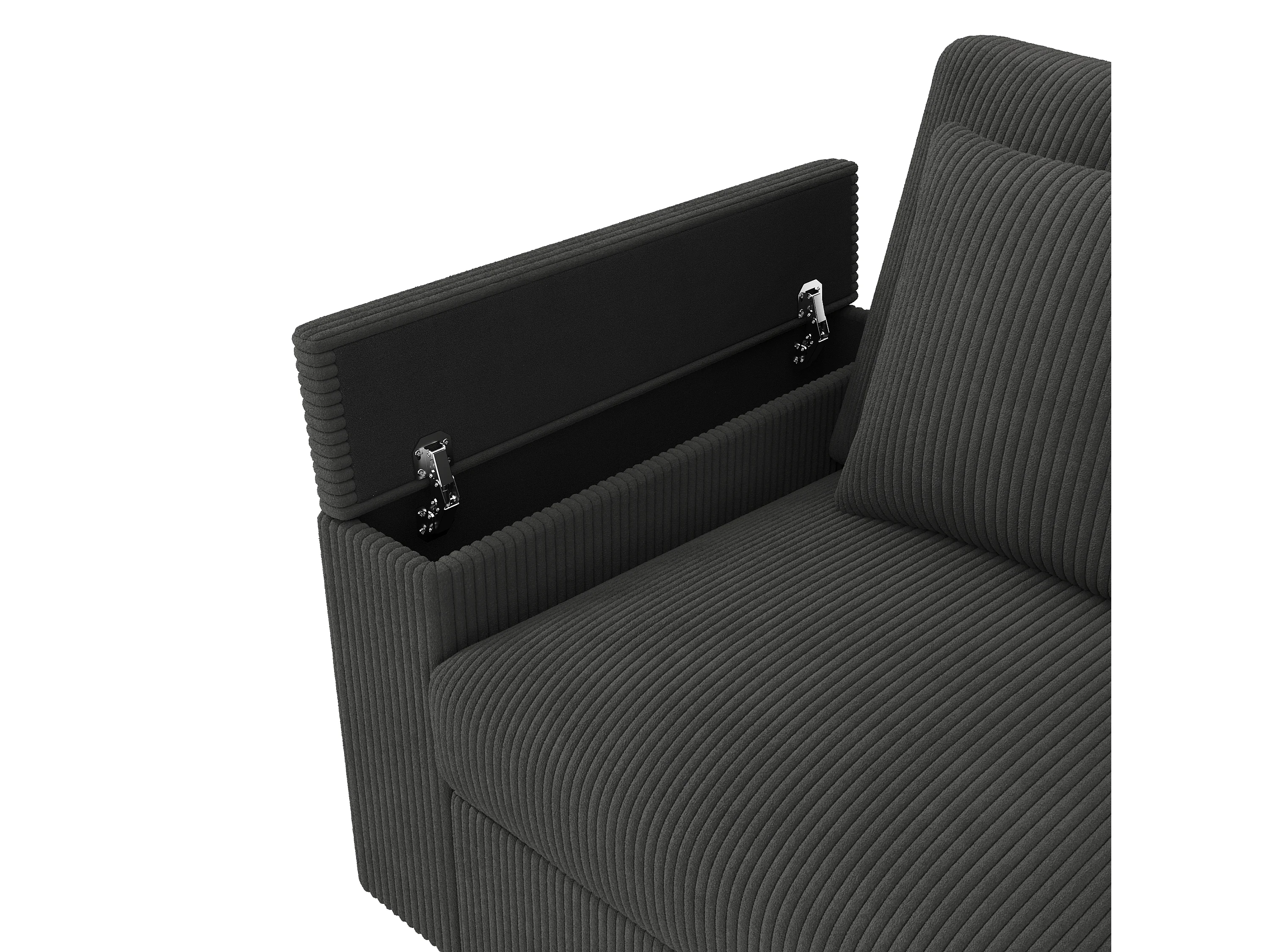 Canapé 4 places avec ports USB/Type-C et rangements - Velours côtelé gris