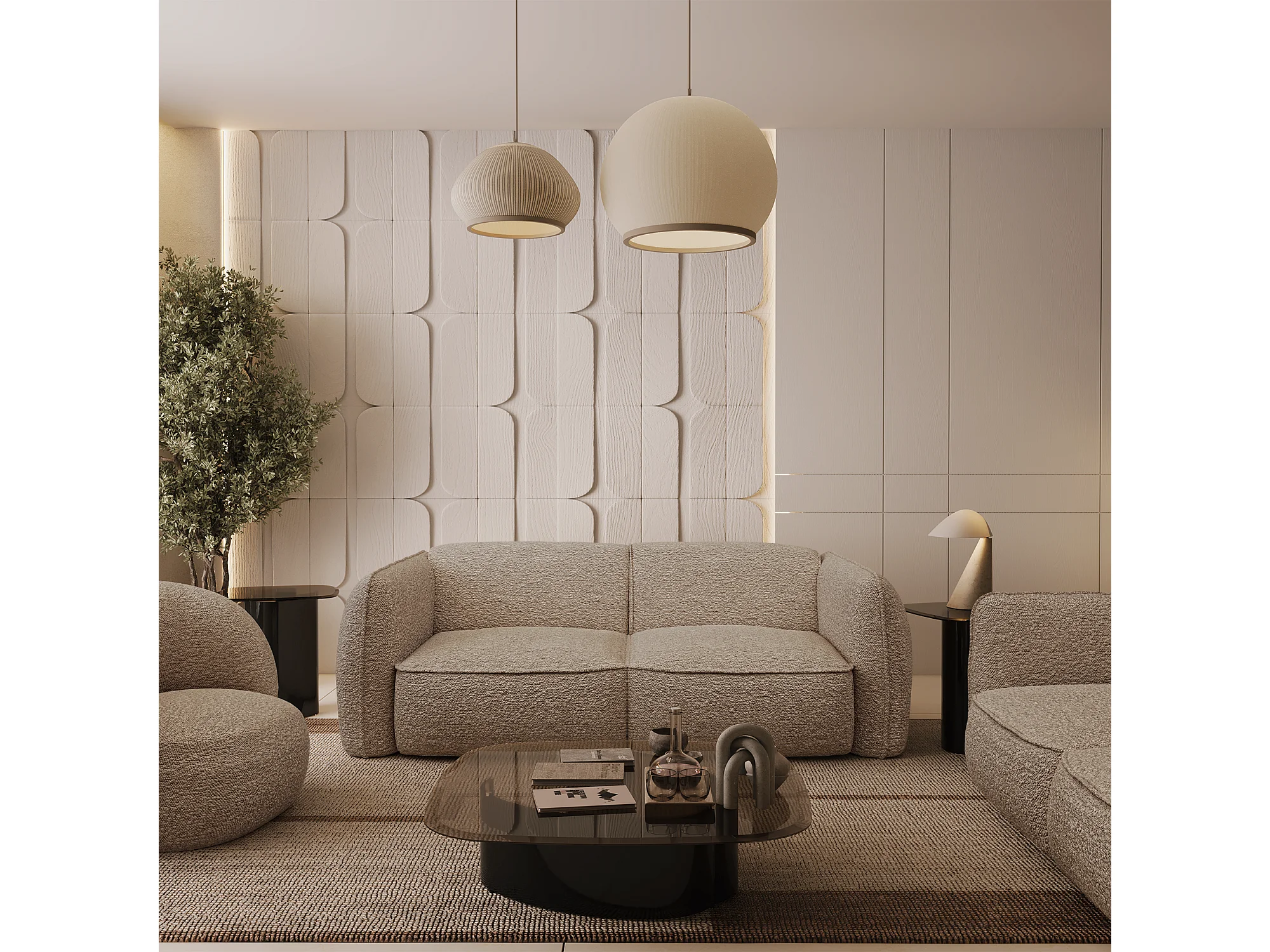 Canapé 4 places bouclette taupe LIVIA