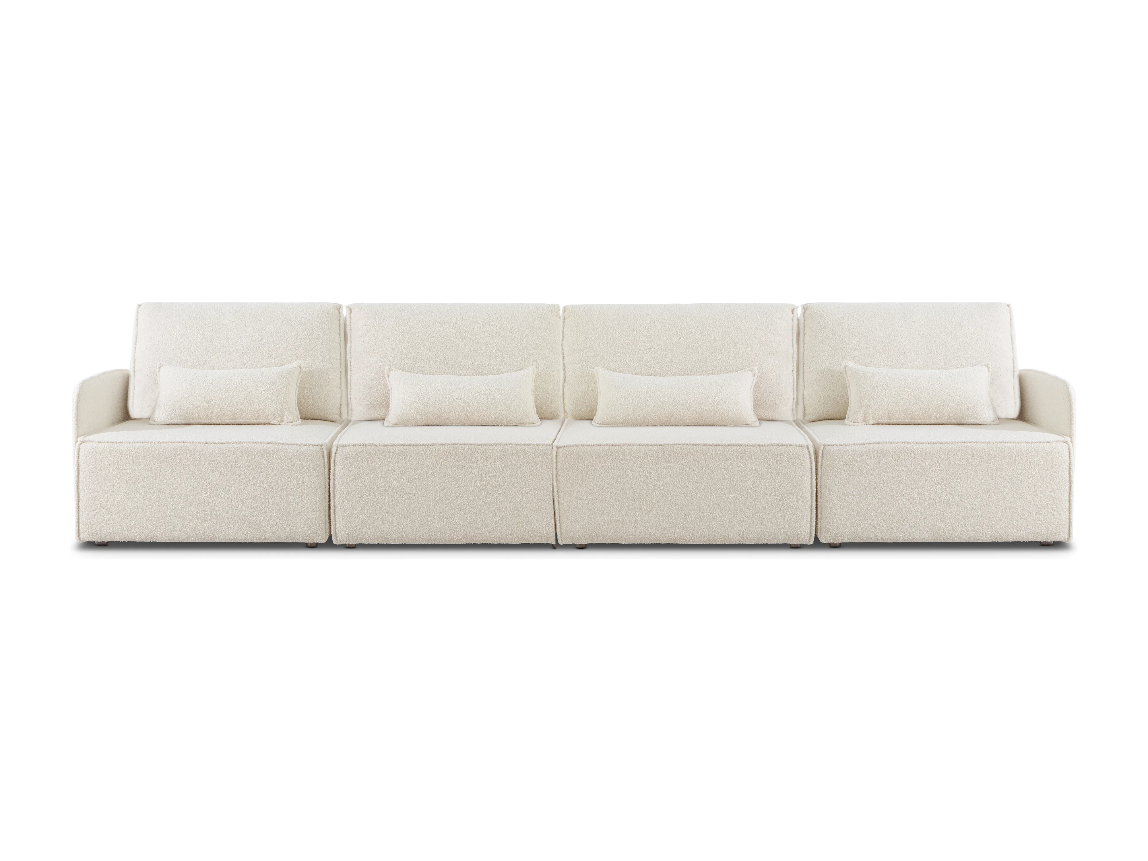 Canapé 4 places chaise longue en bouclé et en pin Blanc Neige