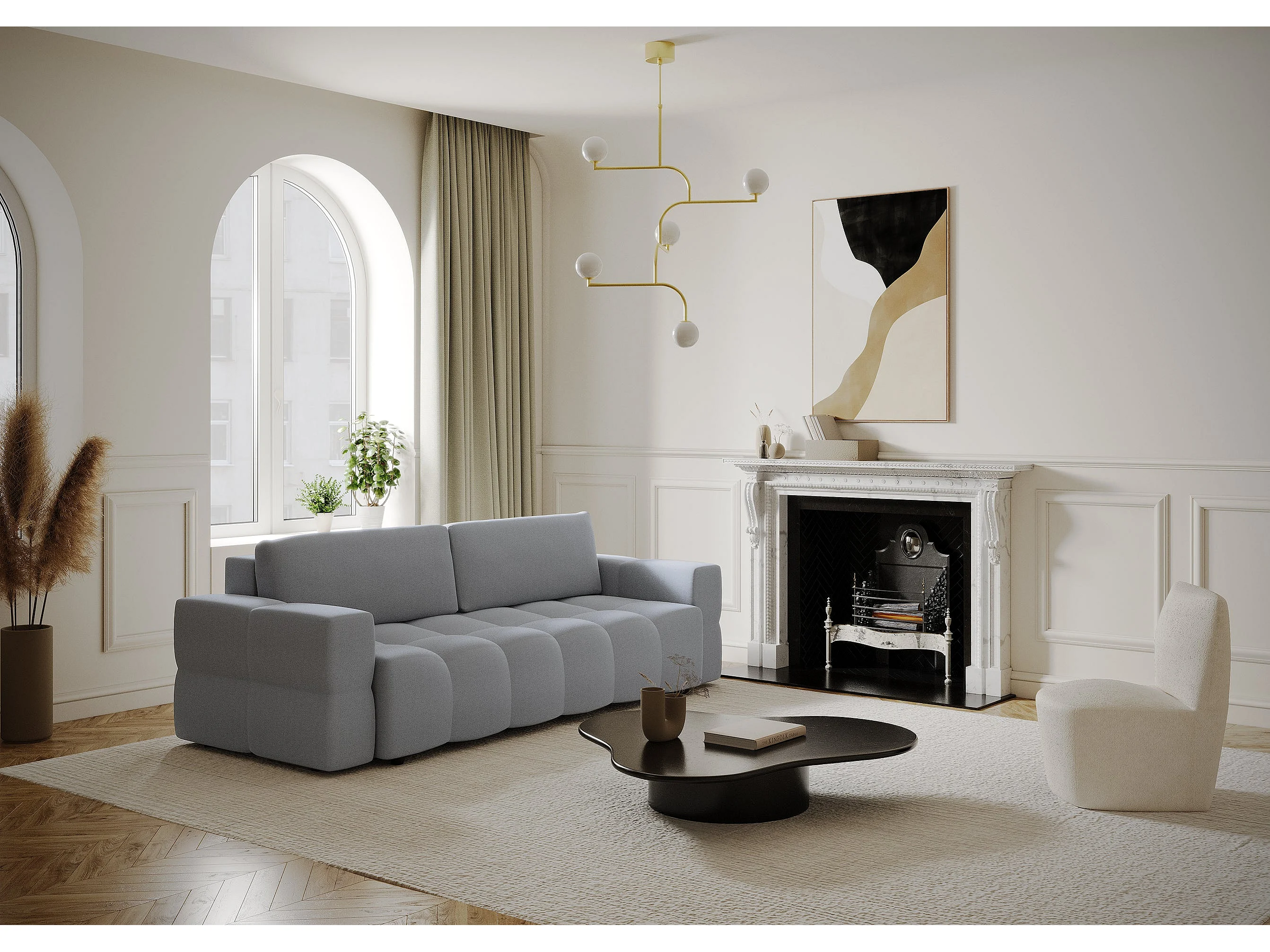 Canapé 4 places convertible coffre tissu tramé gris béton GABRIEL