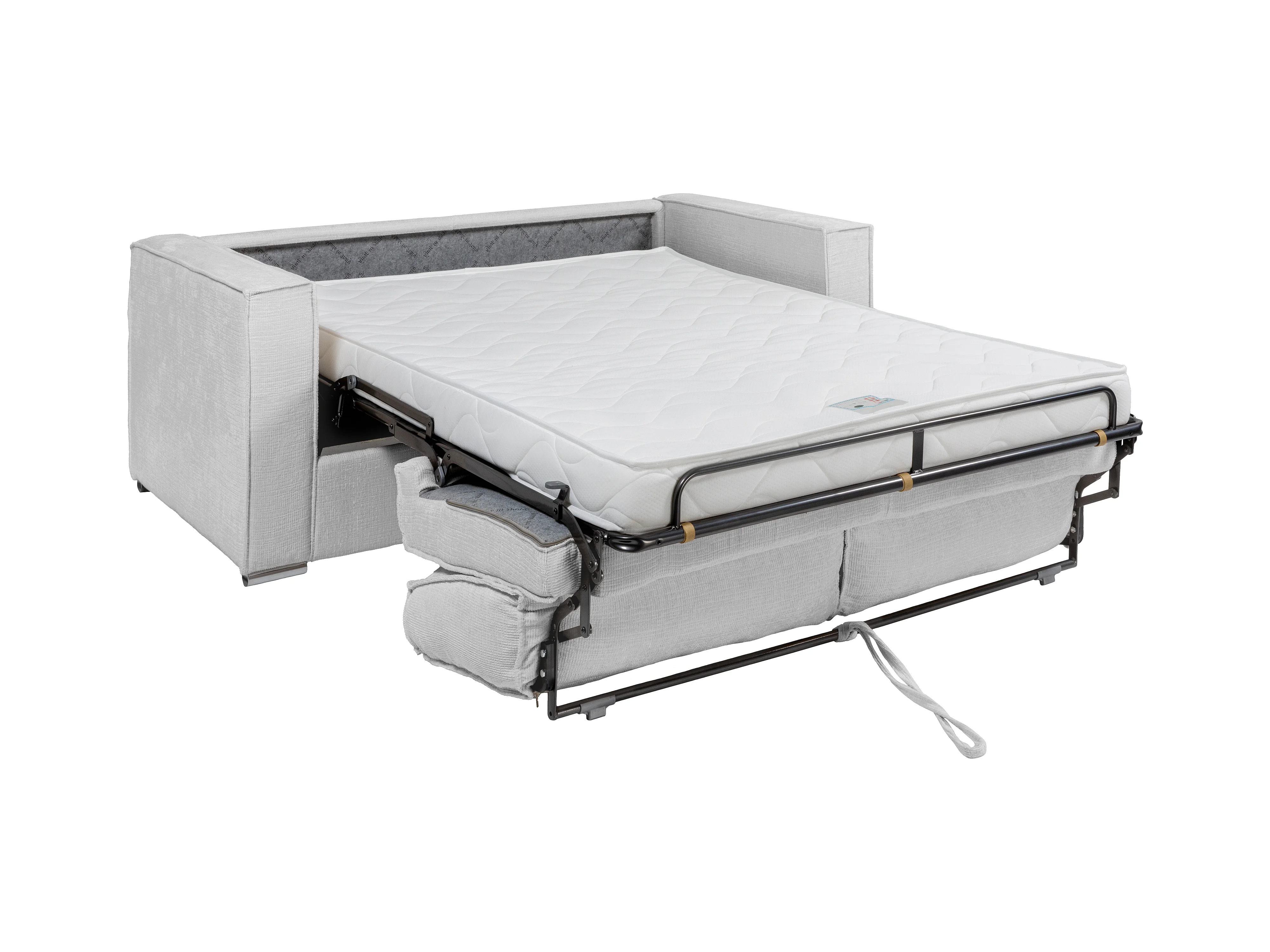 Canapé 4 places convertible express en tissu chenille gris clair - Couchage 160 cm - Matelas 14 cm LORETO
