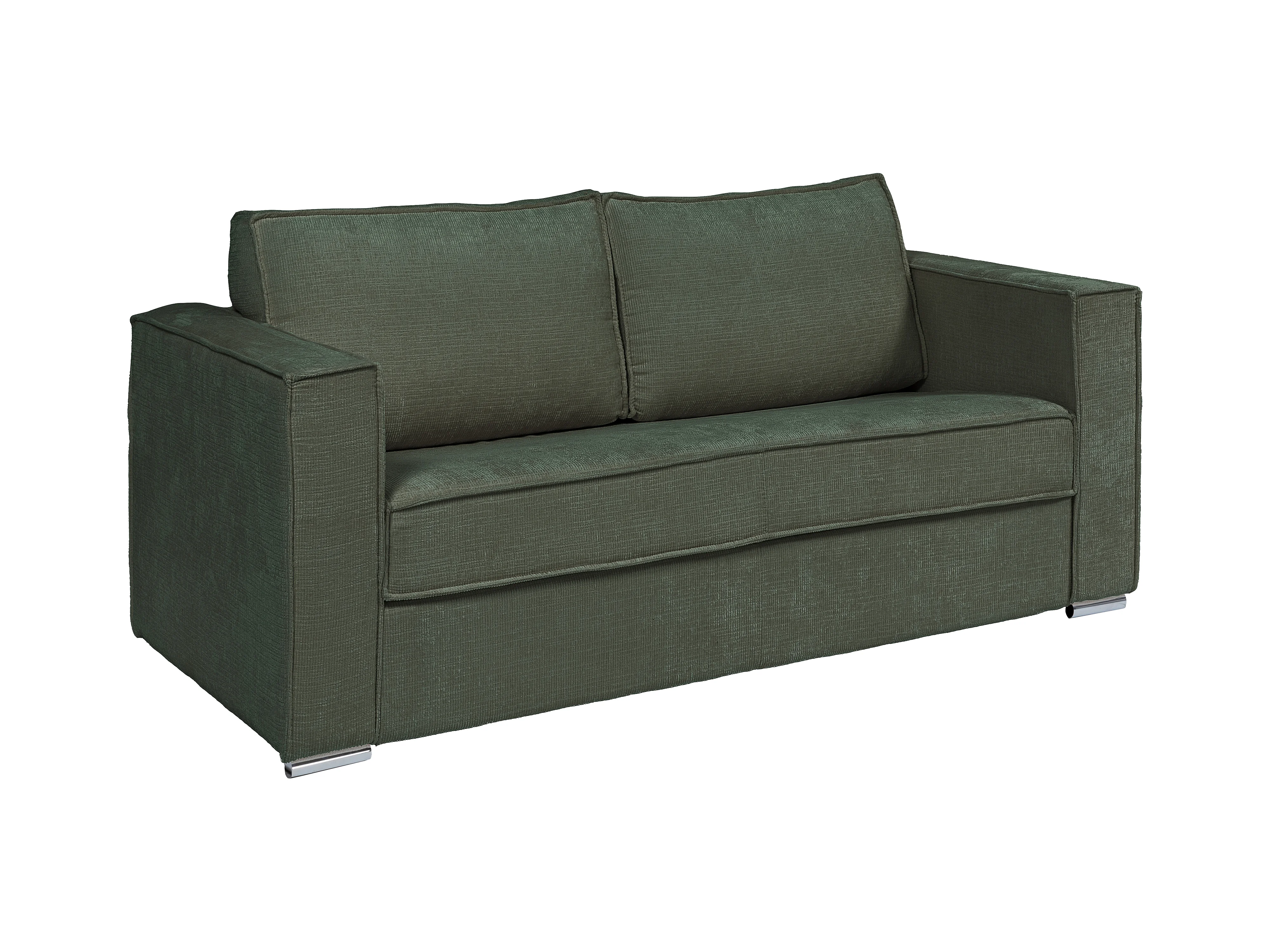 Canapé 4 places convertible express en tissu chenille vert - Couchage à lattes larges 160 cm - Matelas 14 cm LORETO