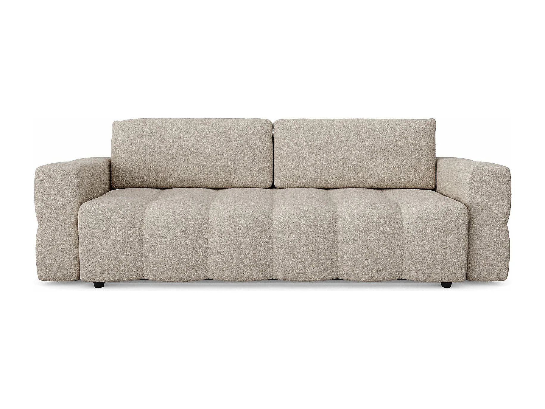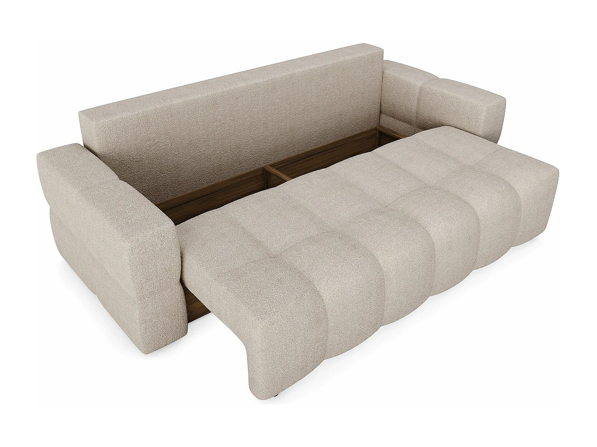 Canapé 4 places convertible coffre noyer bouclette beige GABRIEL