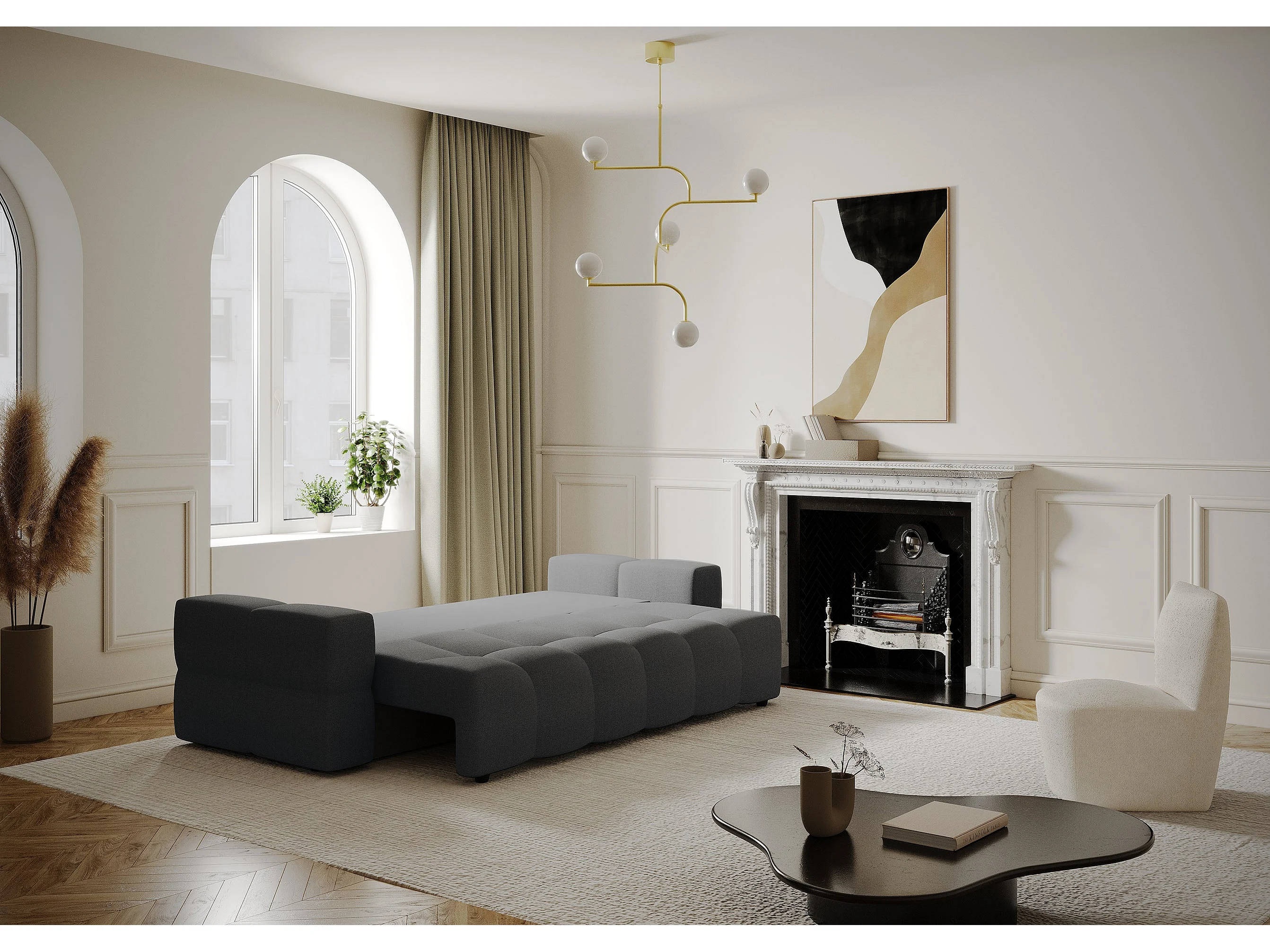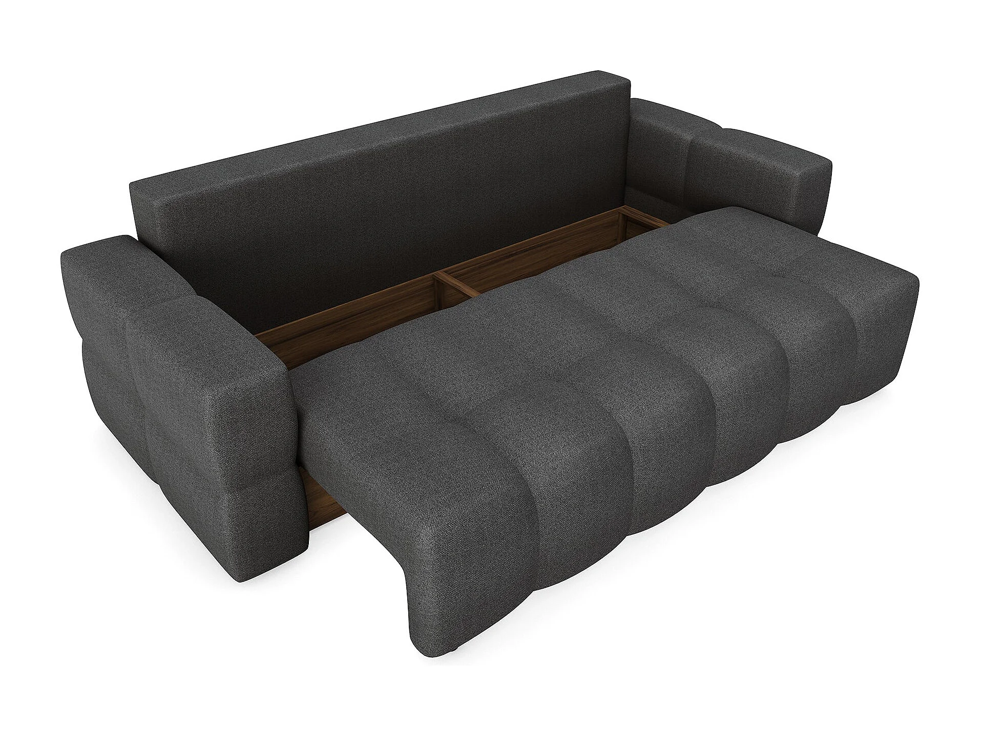 Canapé 4 places convertible coffre noyer tissu tramé gris anthracite GABRIEL