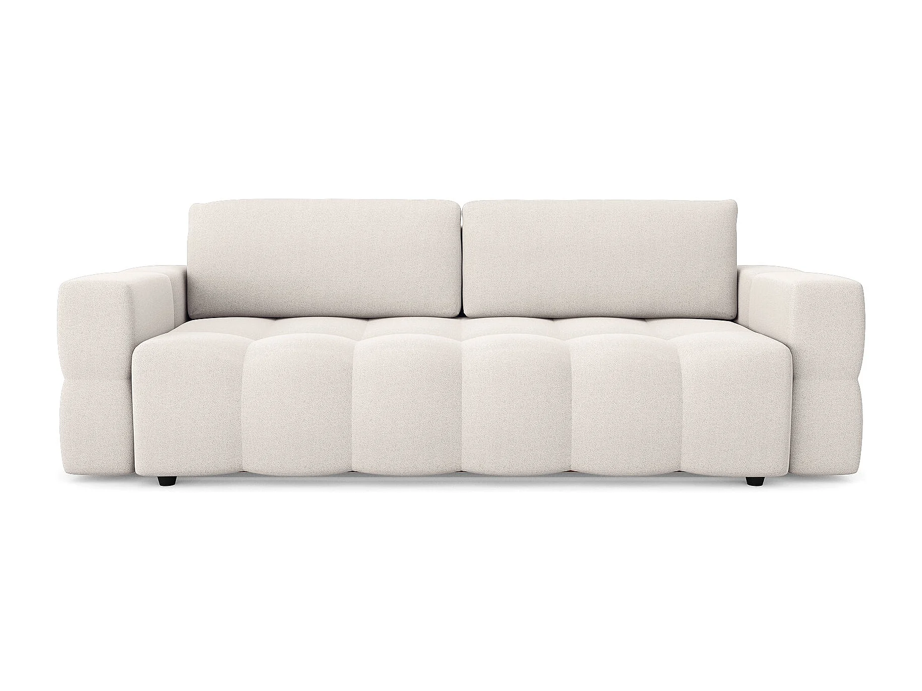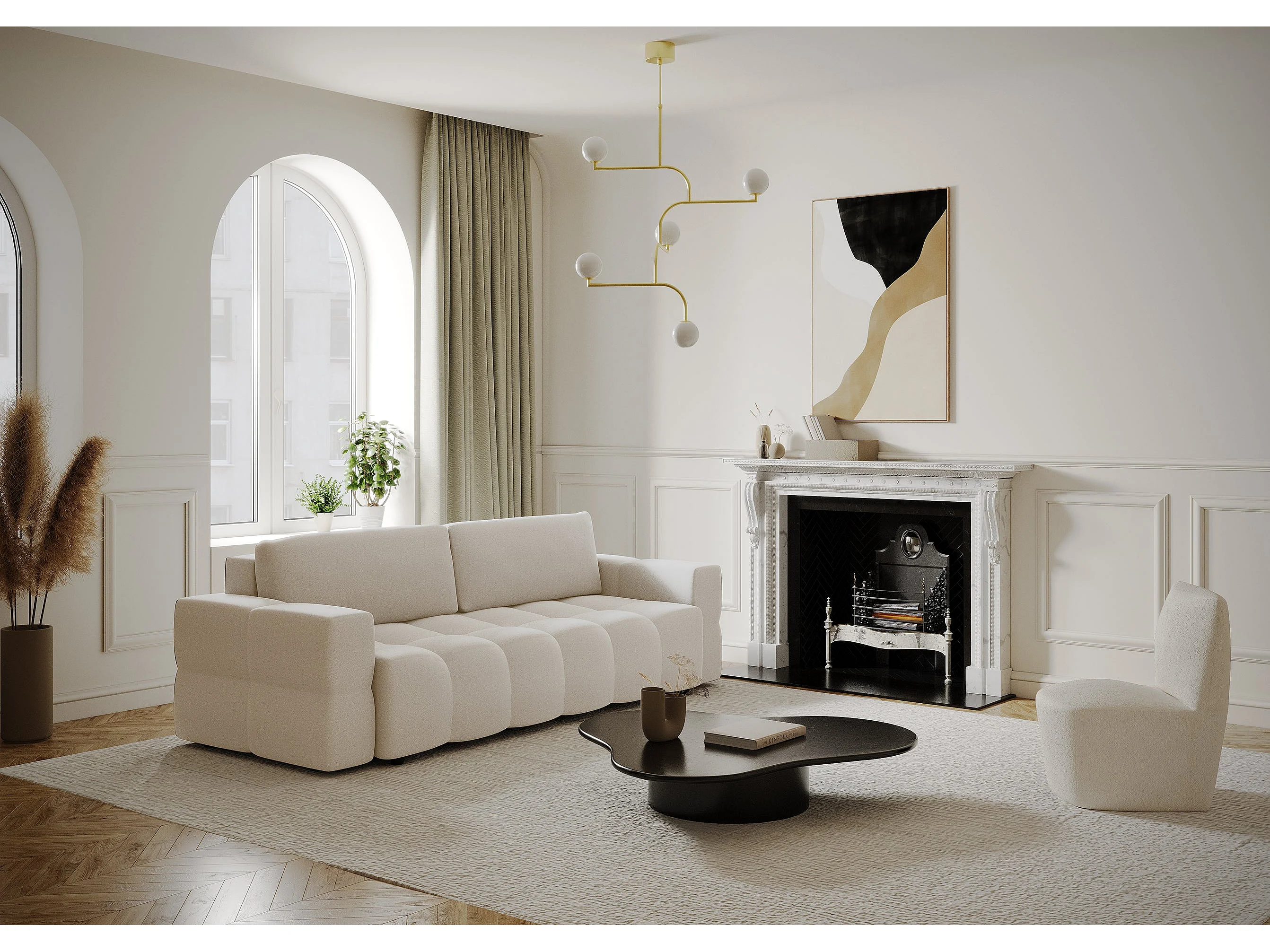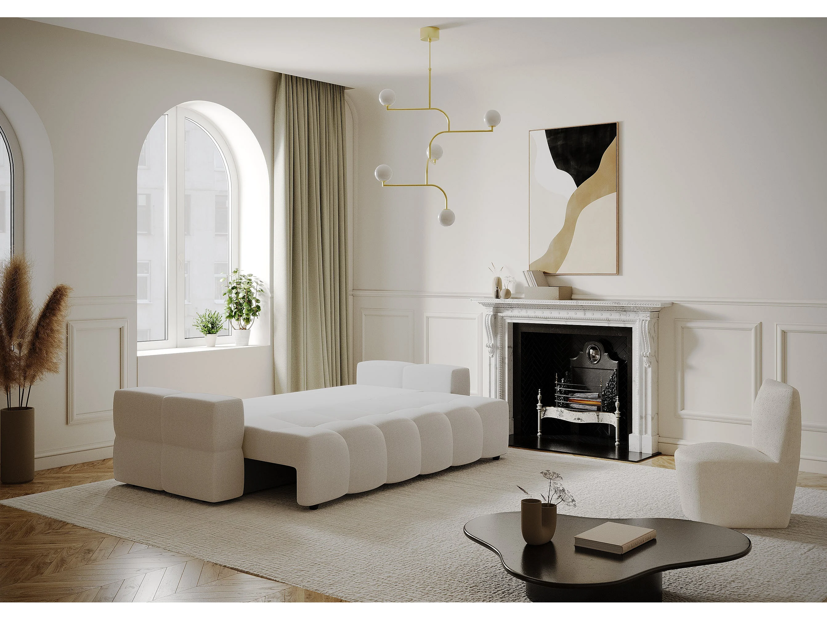 Canapé 4 places convertible coffre noyer tissu tramé crème GABRIEL