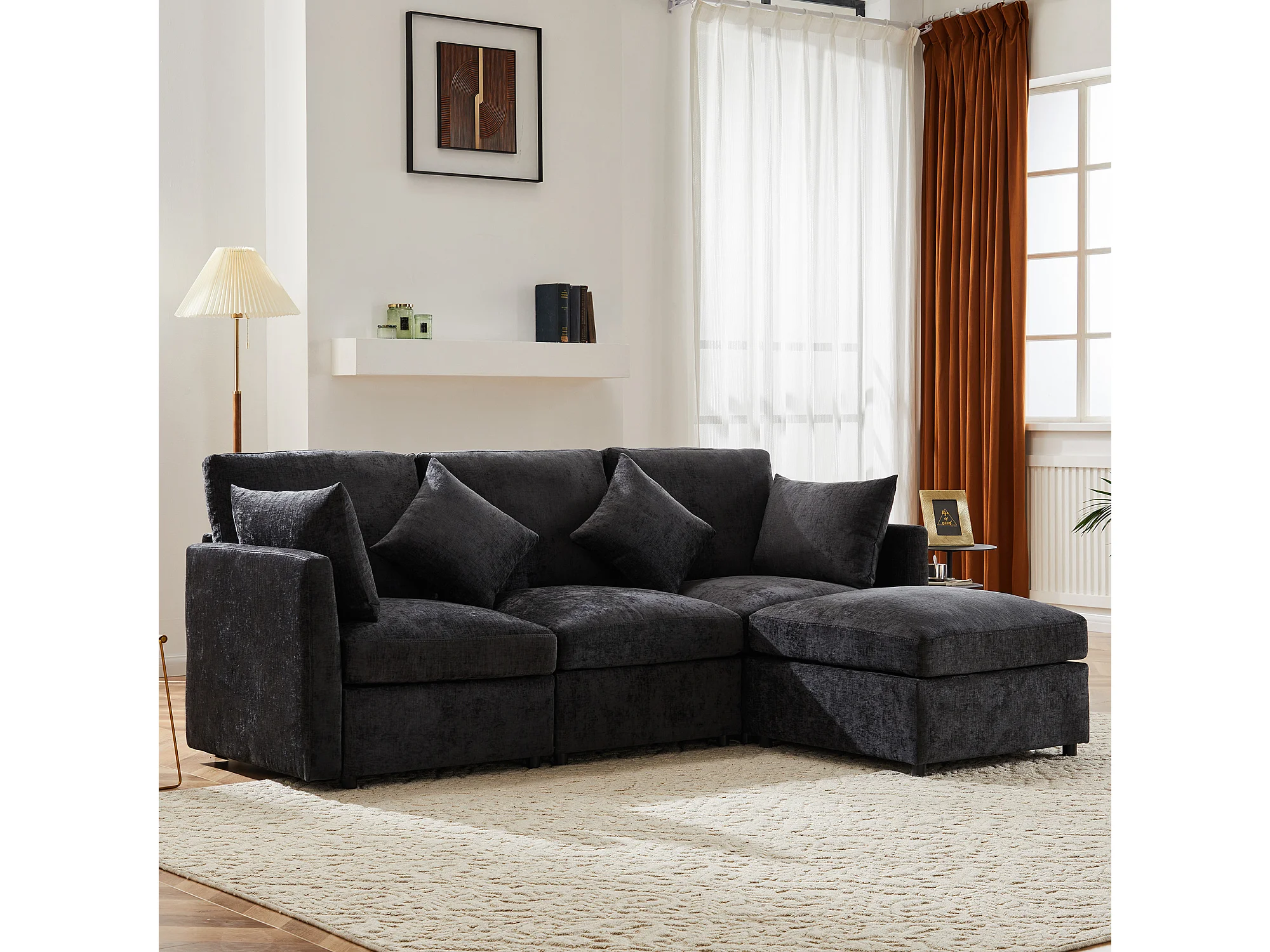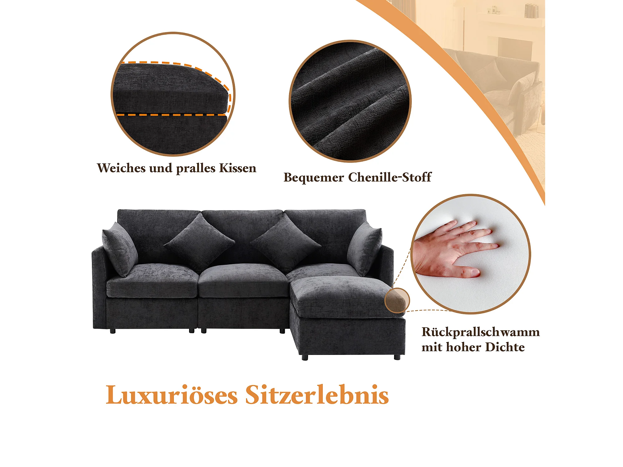 Canapé 4 places d'angle en L - 216 x 161 x 81 cm - avec repose-pieds - chenille - gris