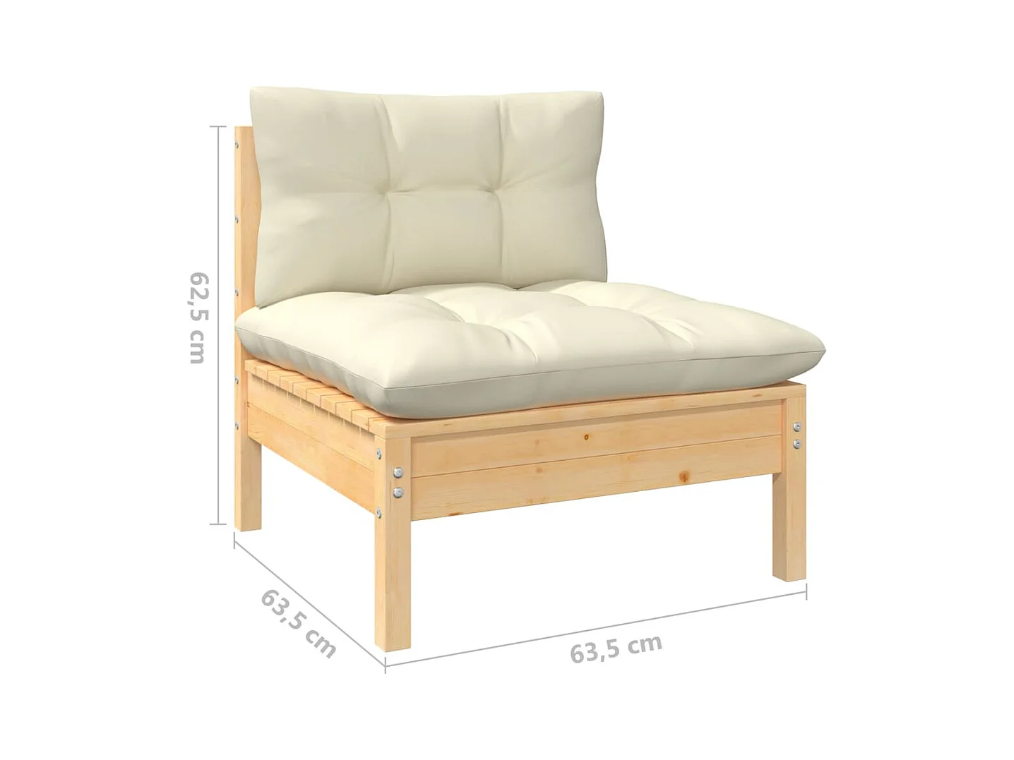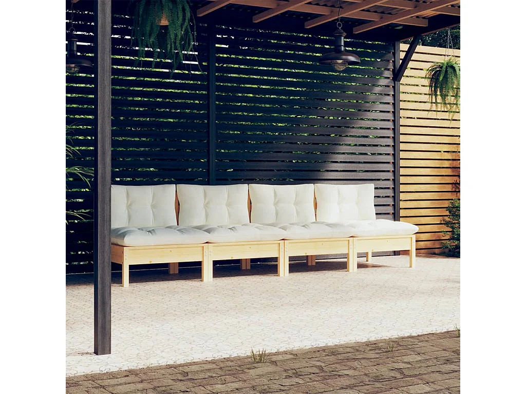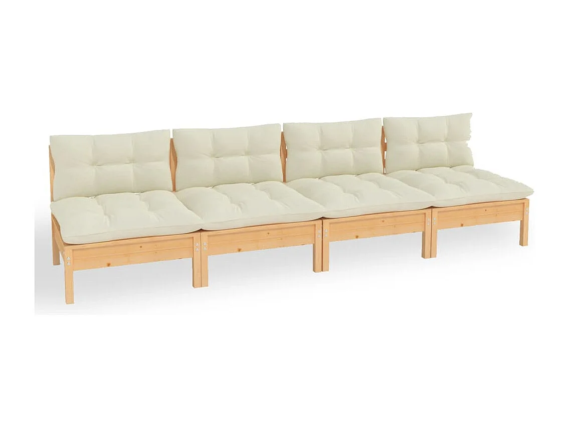 Canapé 4 places de jardin et coussins crème Bois de pin solide