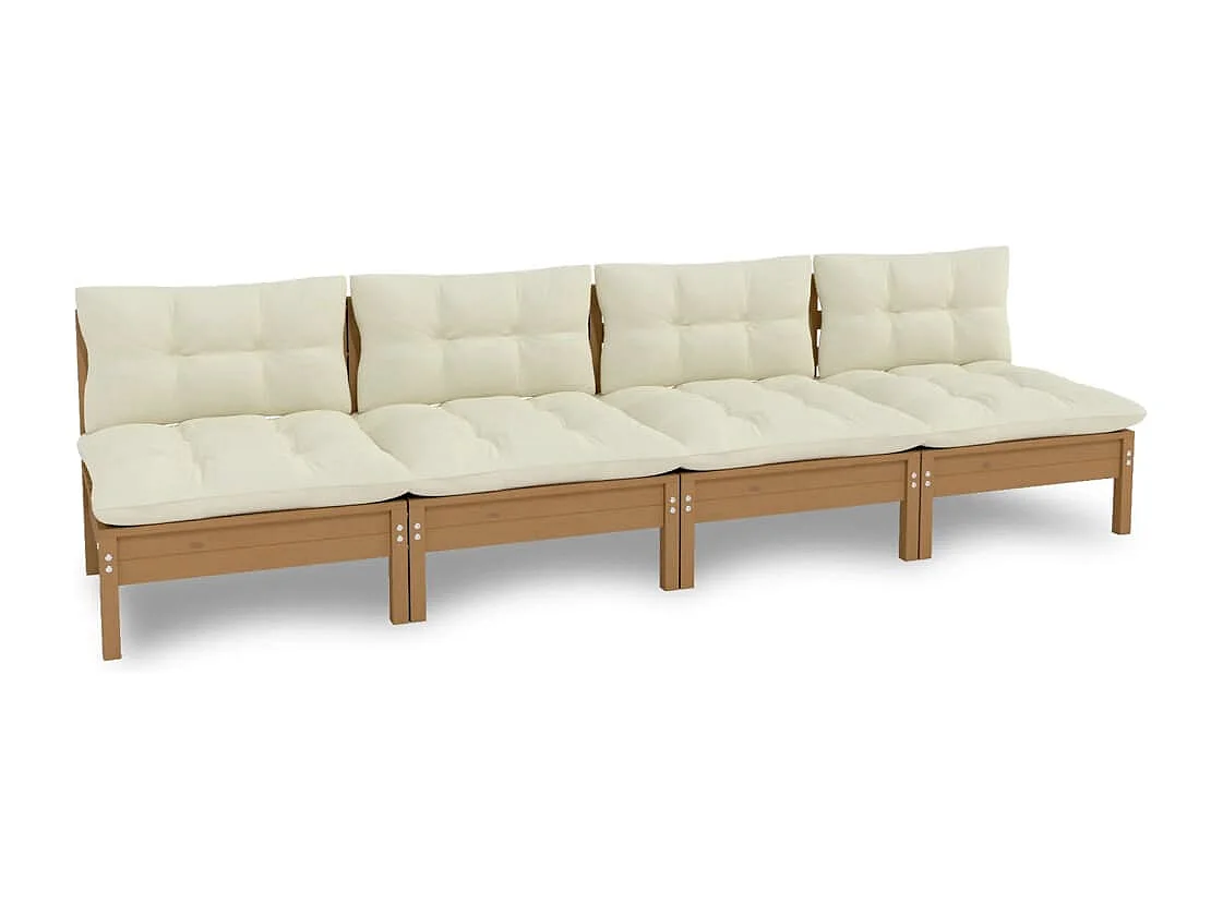 Canapé 4 places de jardin et coussins crème Bois de pin solide