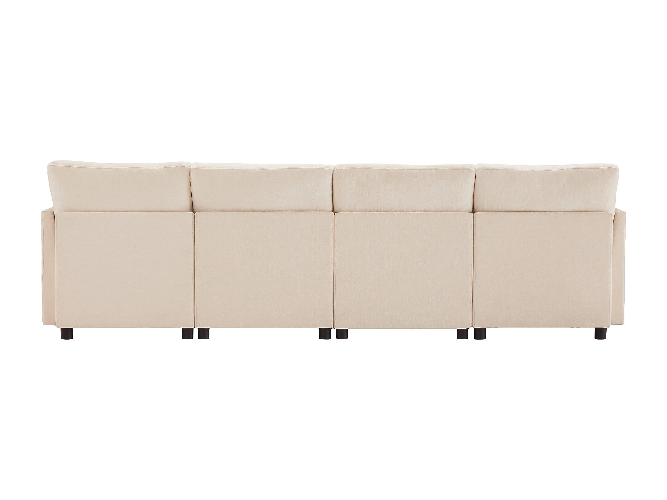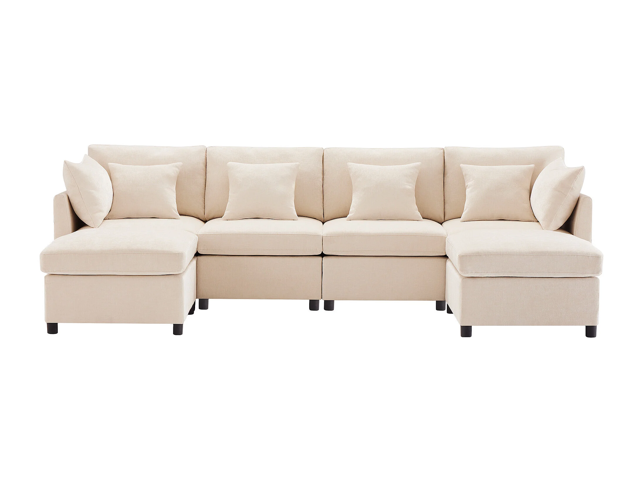 Canapé 4 places en tissu chenille beige avec 2 poufs et 6 coussins