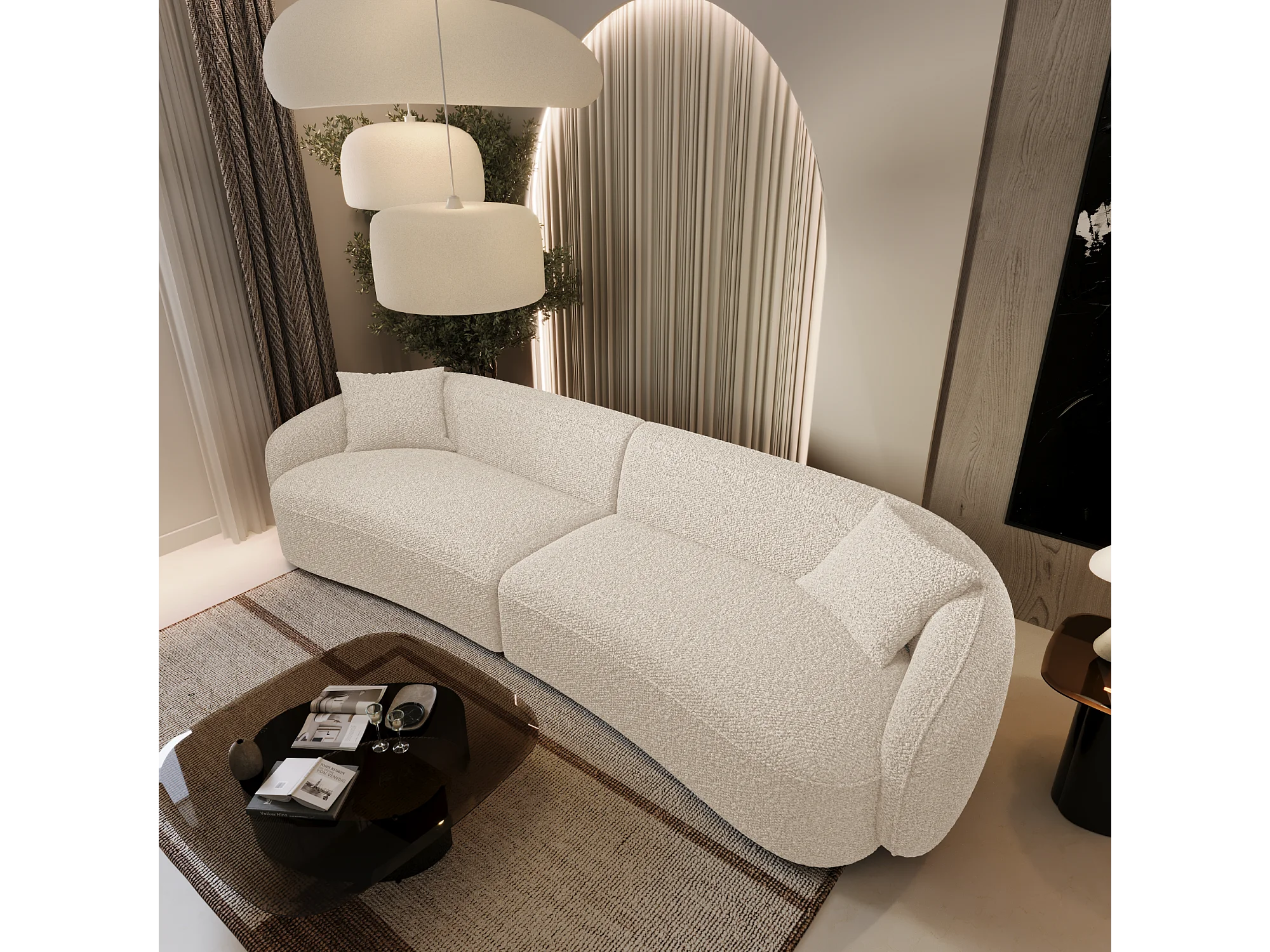 Canapé 4 places tissu bouclette crème CELINE