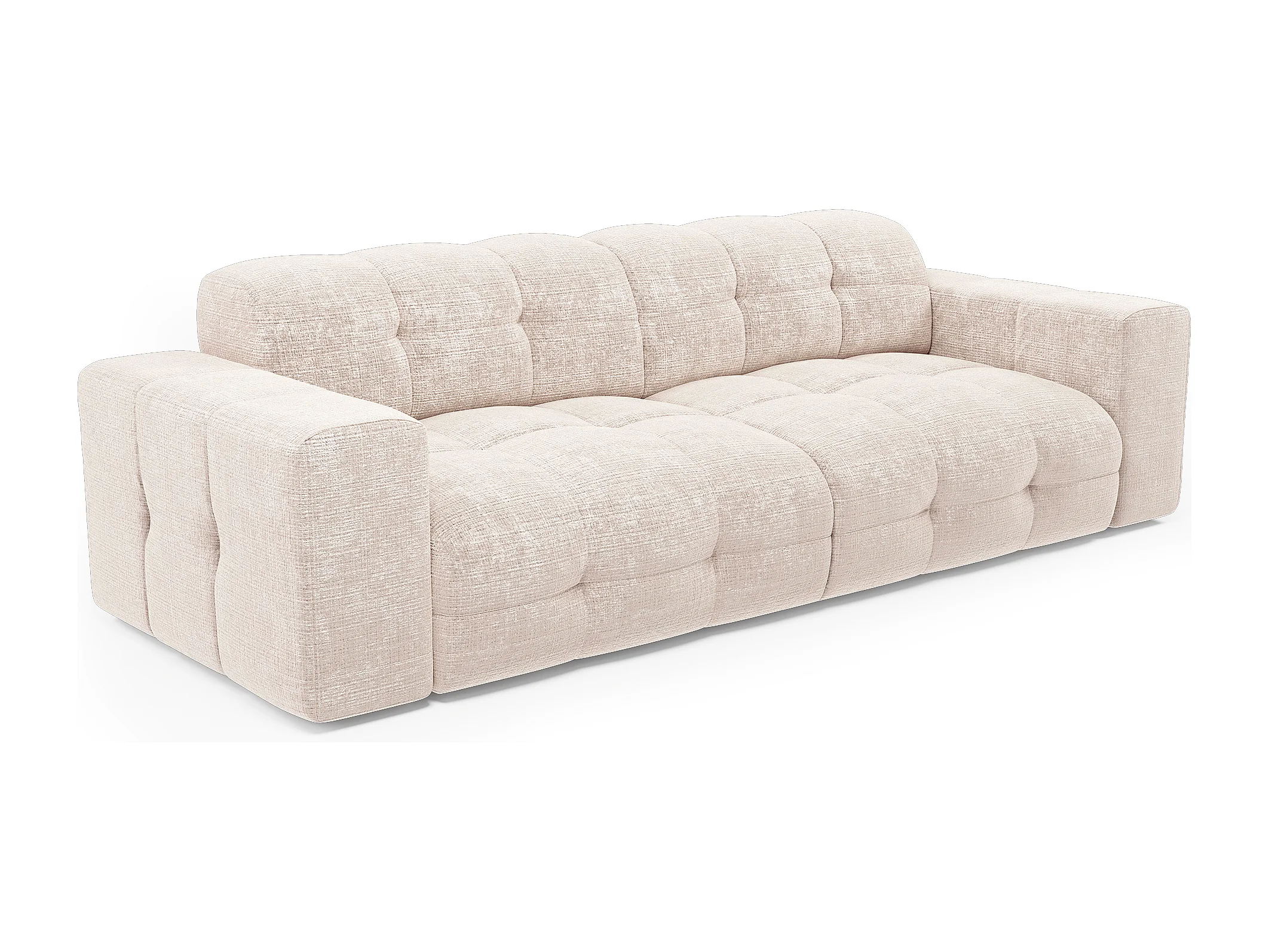 Canapé 4 places velours gaufré crème MAEL