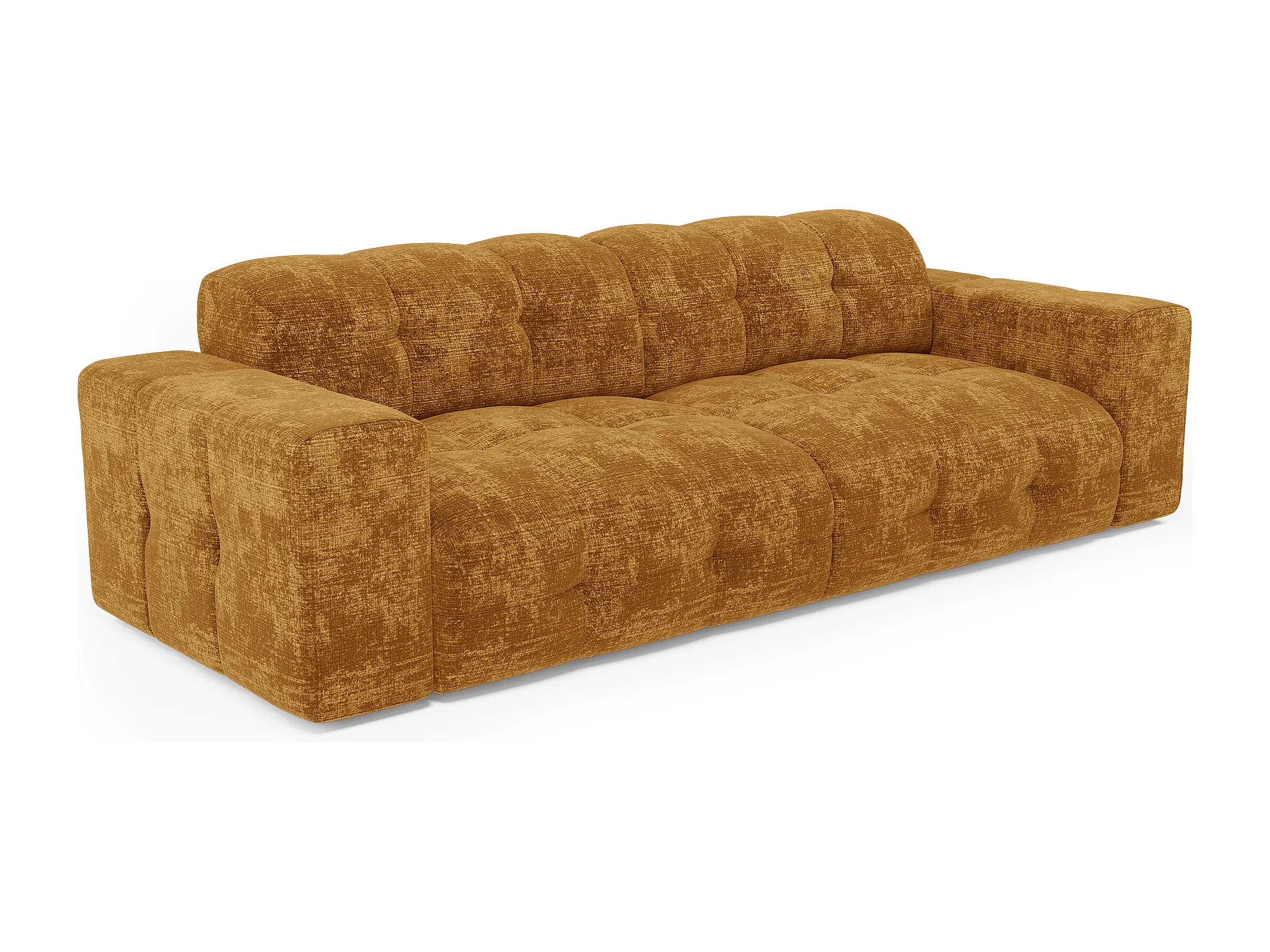 Canapé 4 places velours gaufré moutarde MAEL