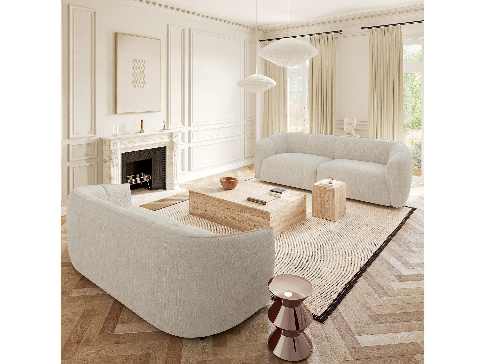Canapé 4 places velours tramé crème NAMI