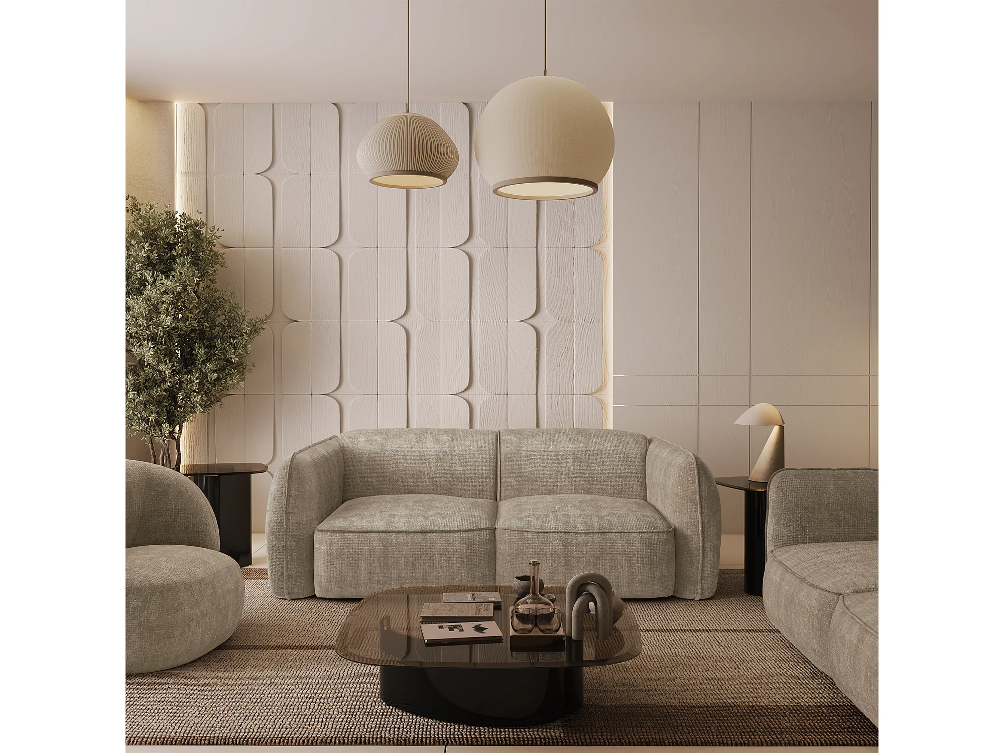 Canapé 4 places velours tramé taupe LIVIA