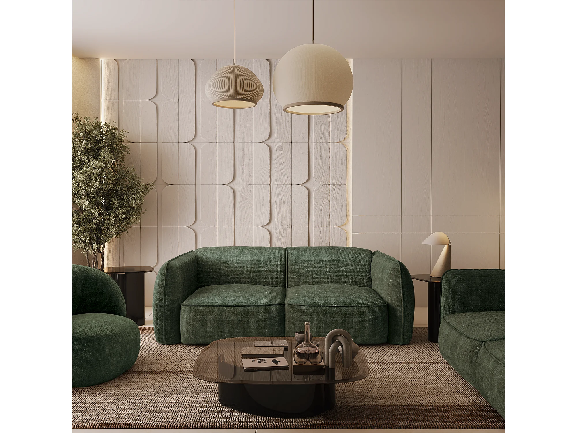 Canapé 4 places velours tramé vert olive LIVIA