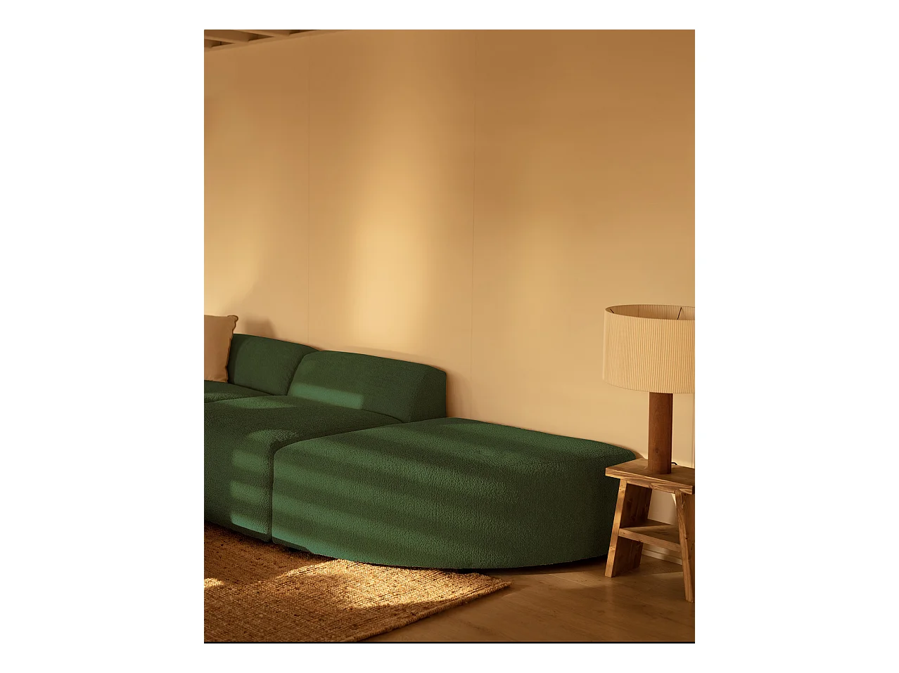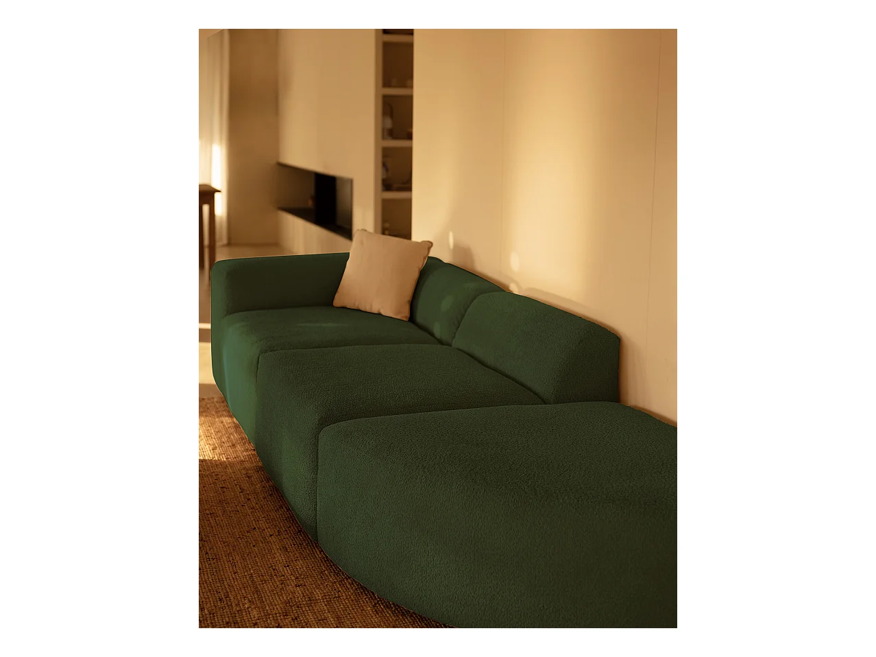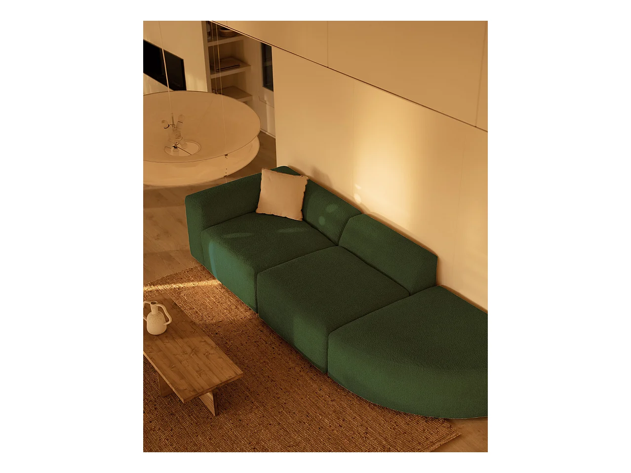 Canapé 5/6 places 3 modules avec courbe à droite en bouclé vert