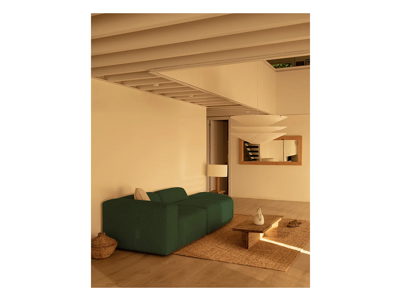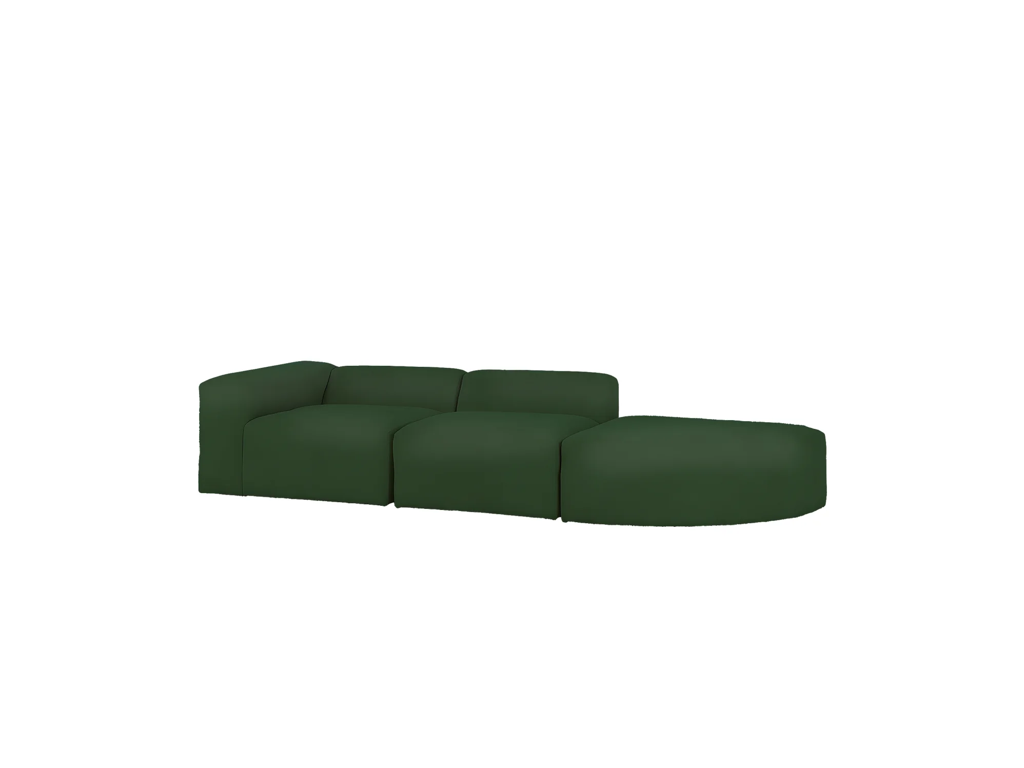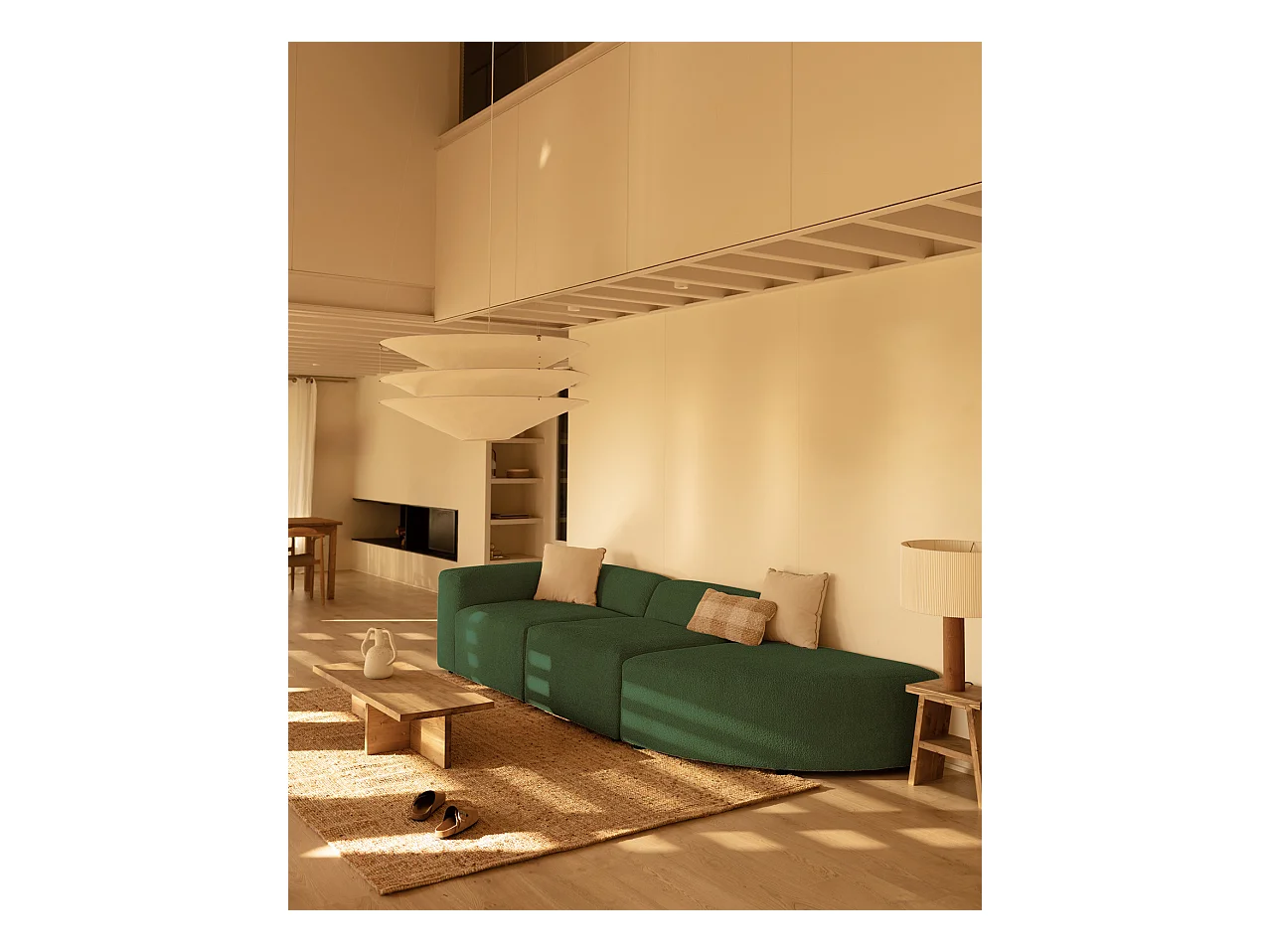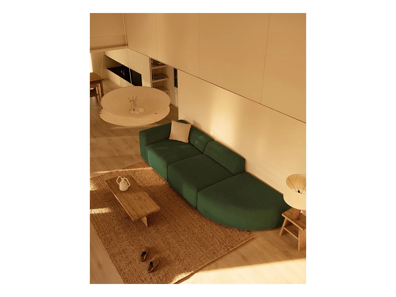 Canapé 5/6 places 3 modules avec courbe à droite en bouclé vert