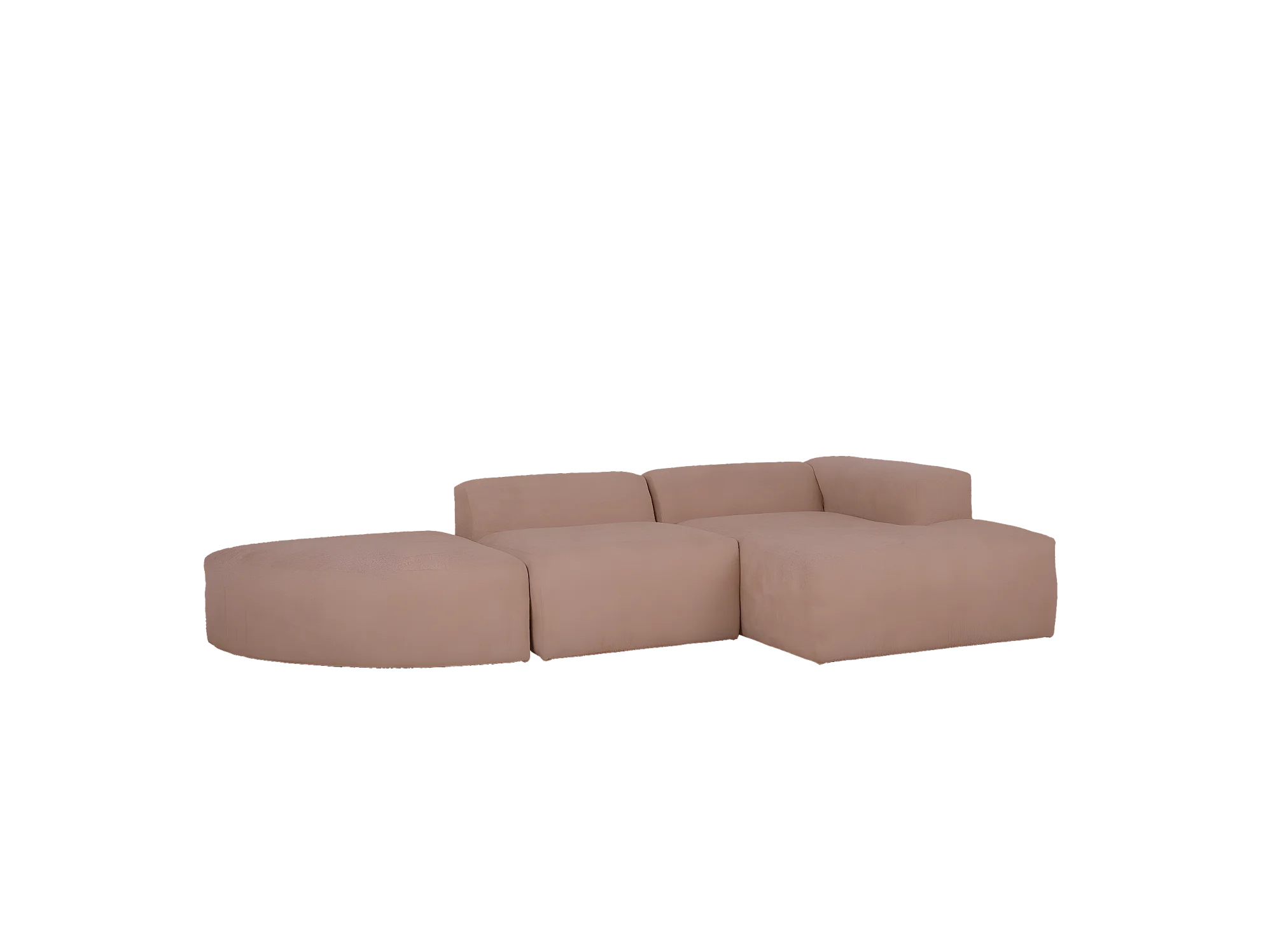 Canapé 5/6 places 3 modules courbe d'angle droit en bouclé rose