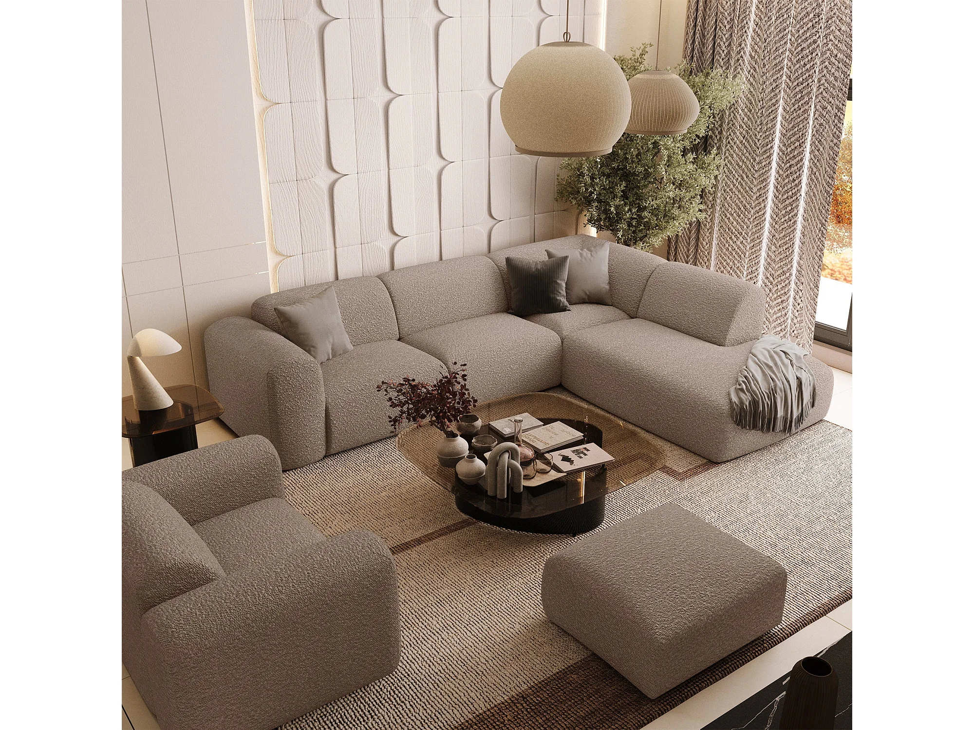 Canapé 5 places grand angle droit bouclette taupe MYRA