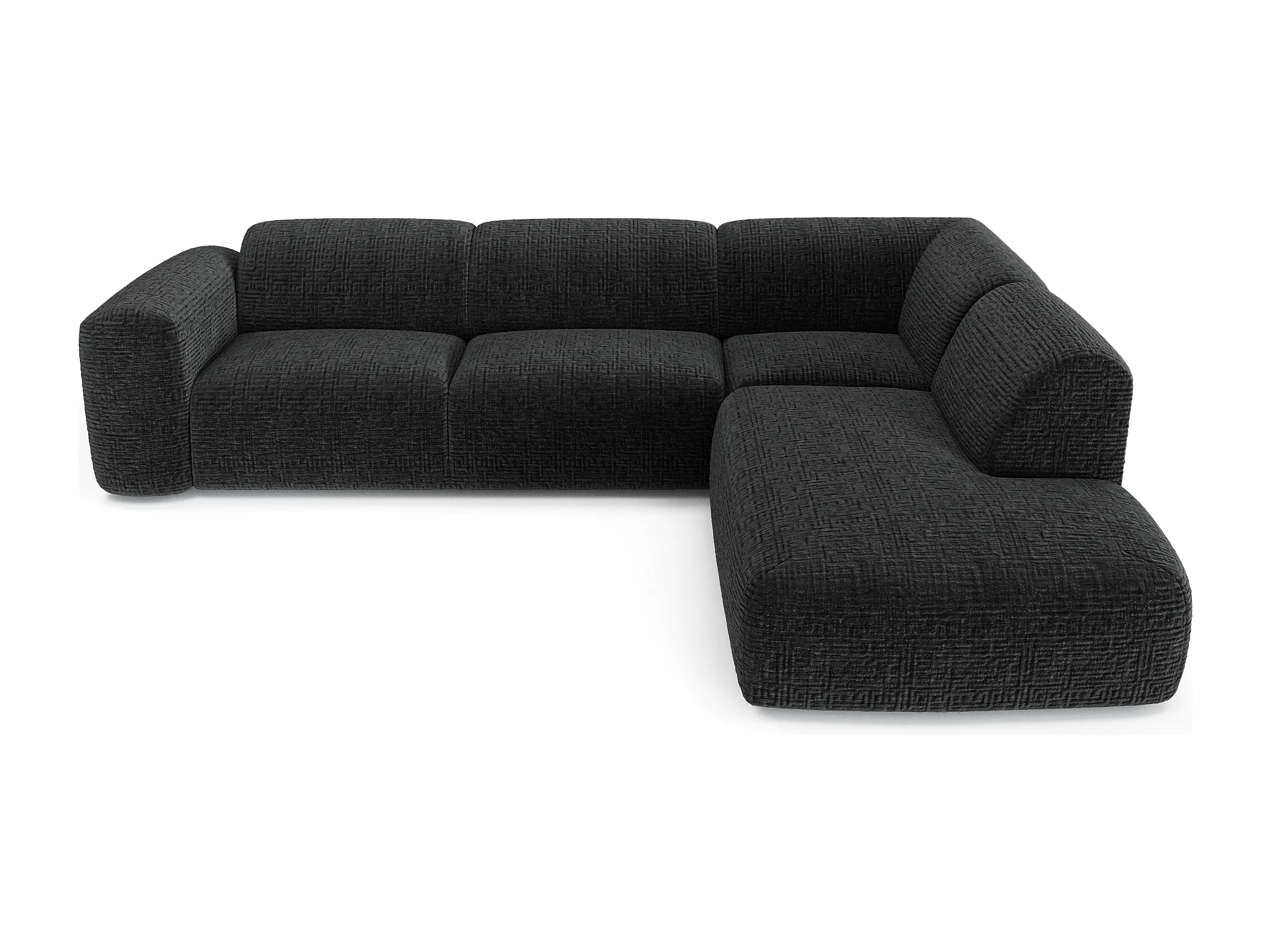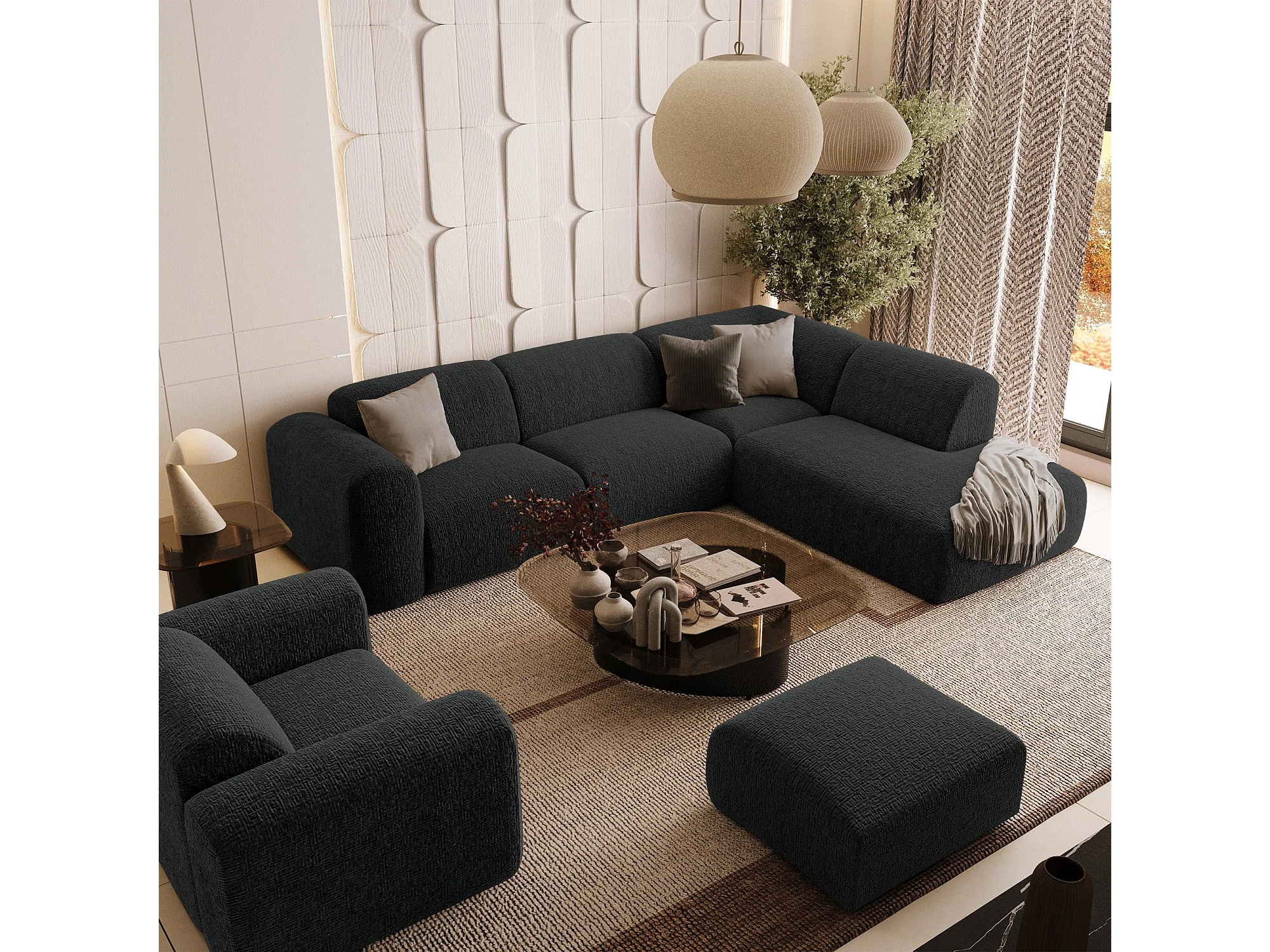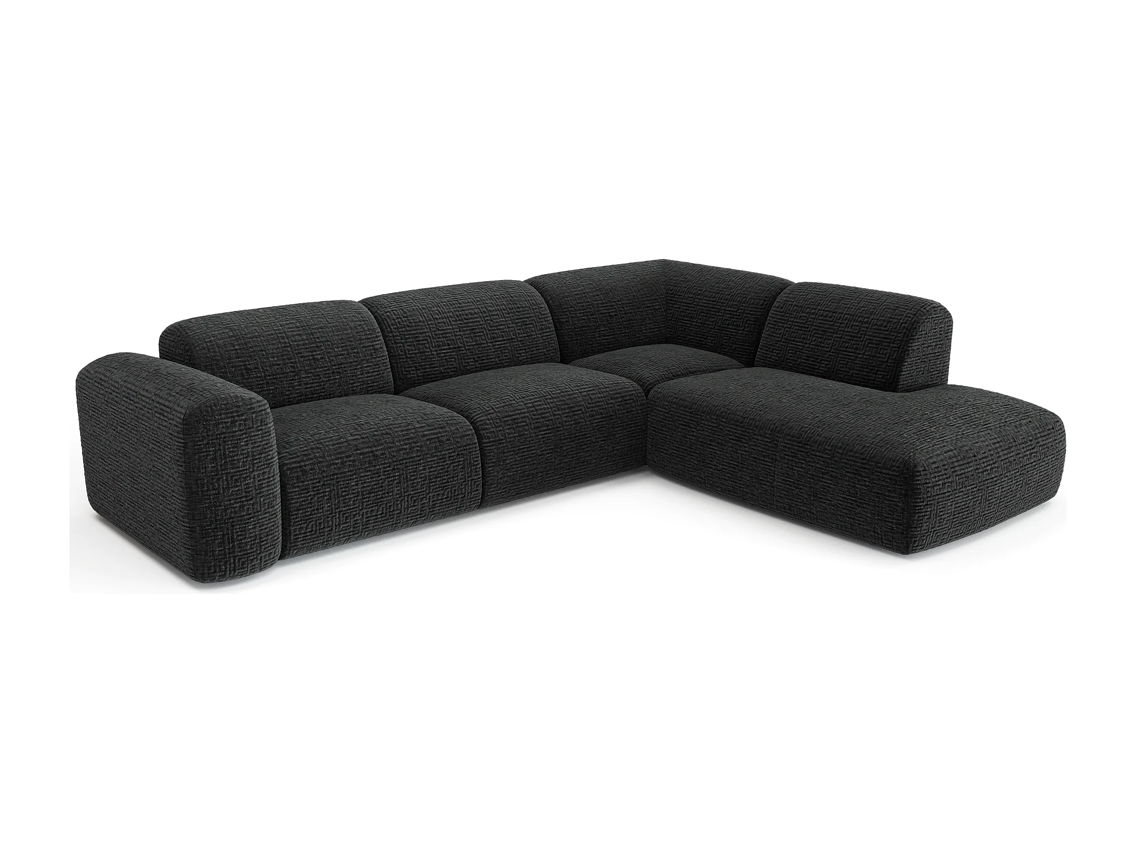 Canapé 5 places grand angle droit velours à motifs noir MYRA