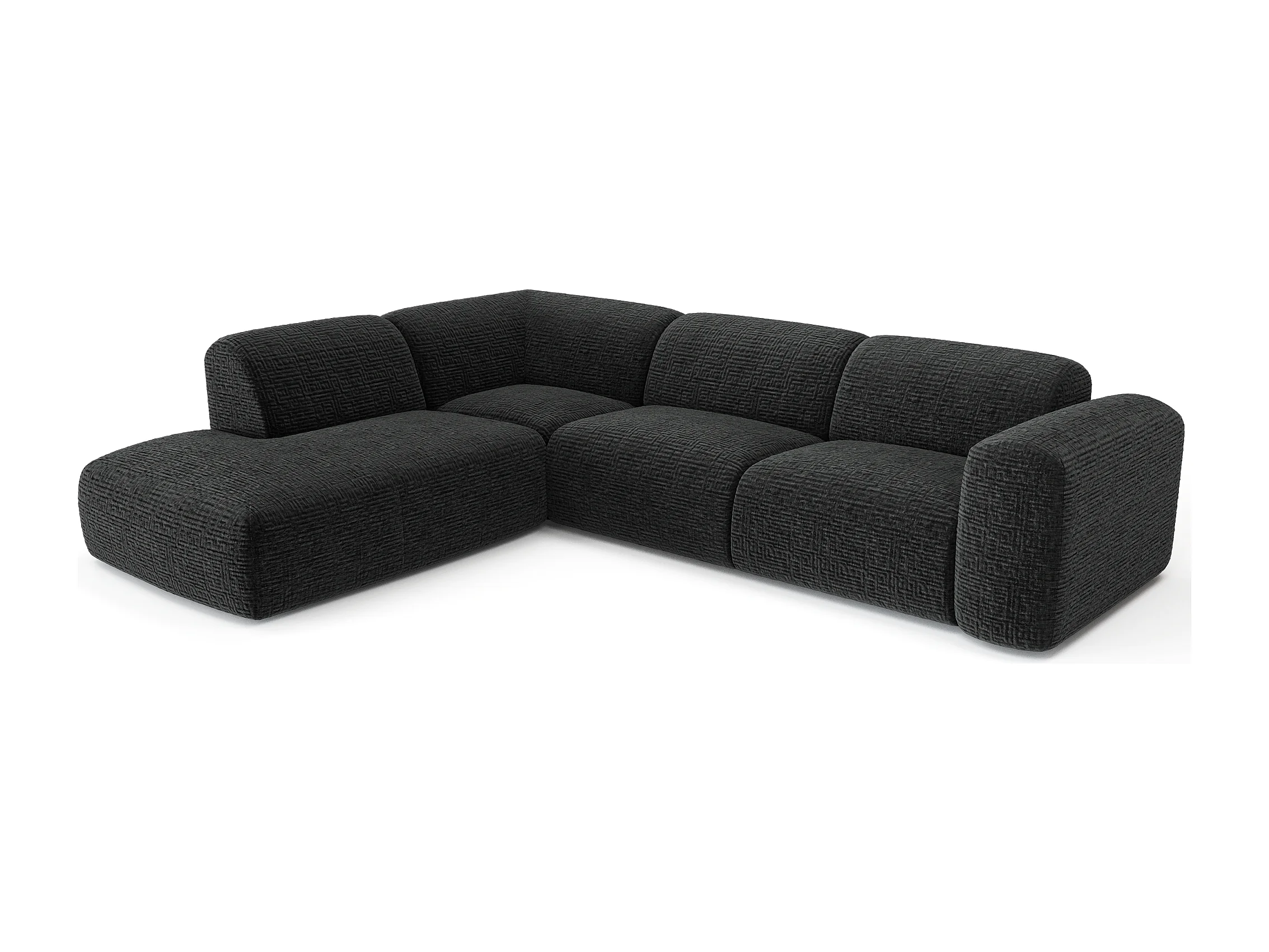 Canapé 5 places grand angle gauche velours à motifs noir MYRA