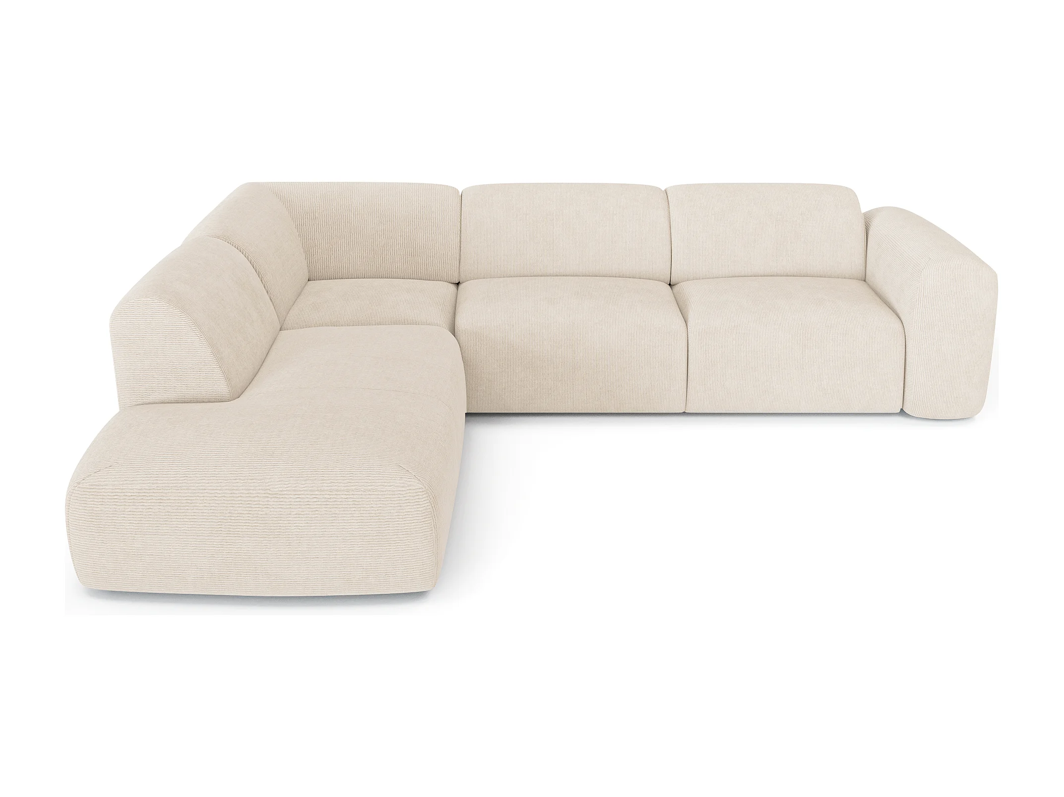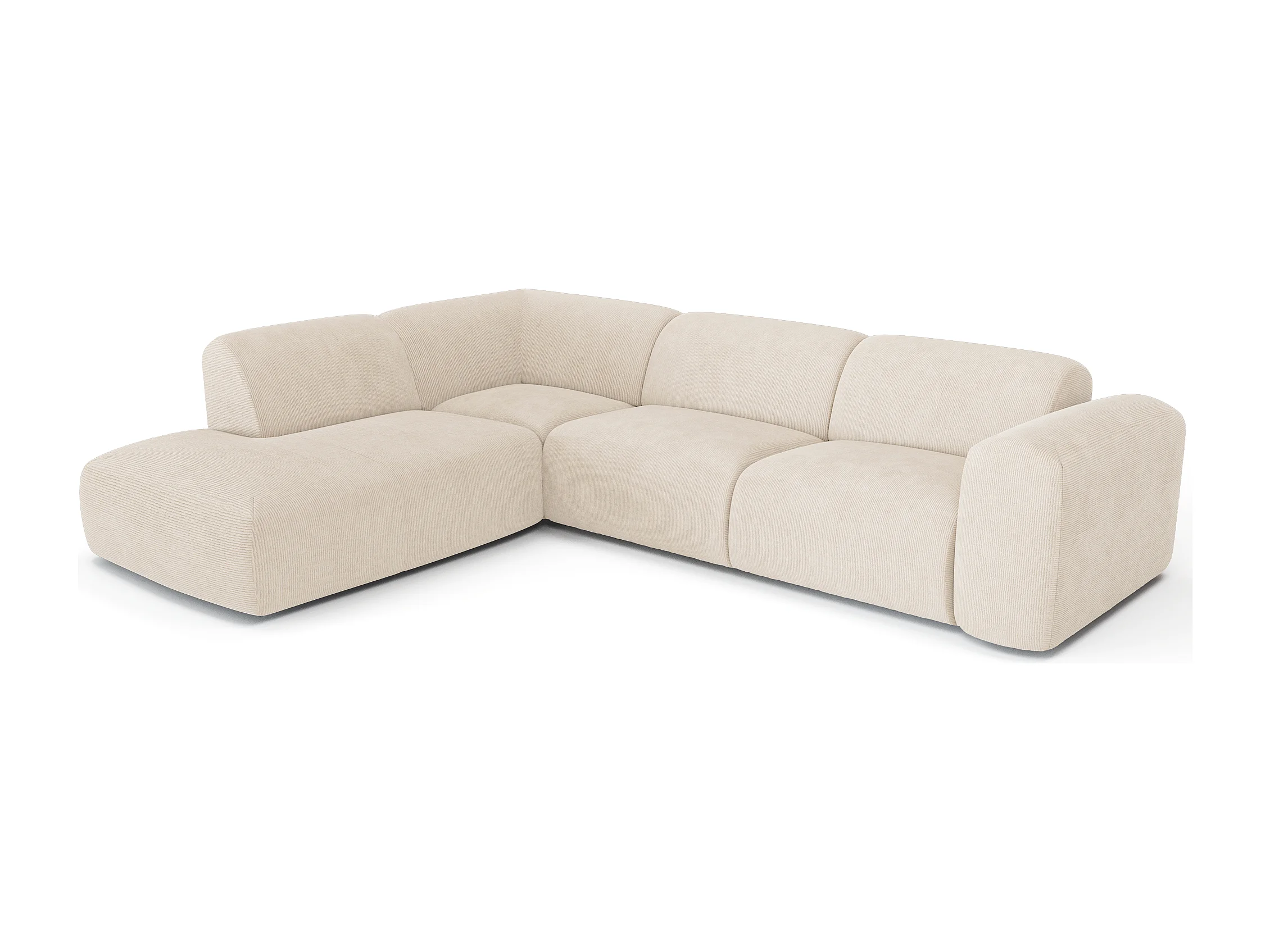 Canapé 5 places grand angle gauche velours côtelé crème MYRA
