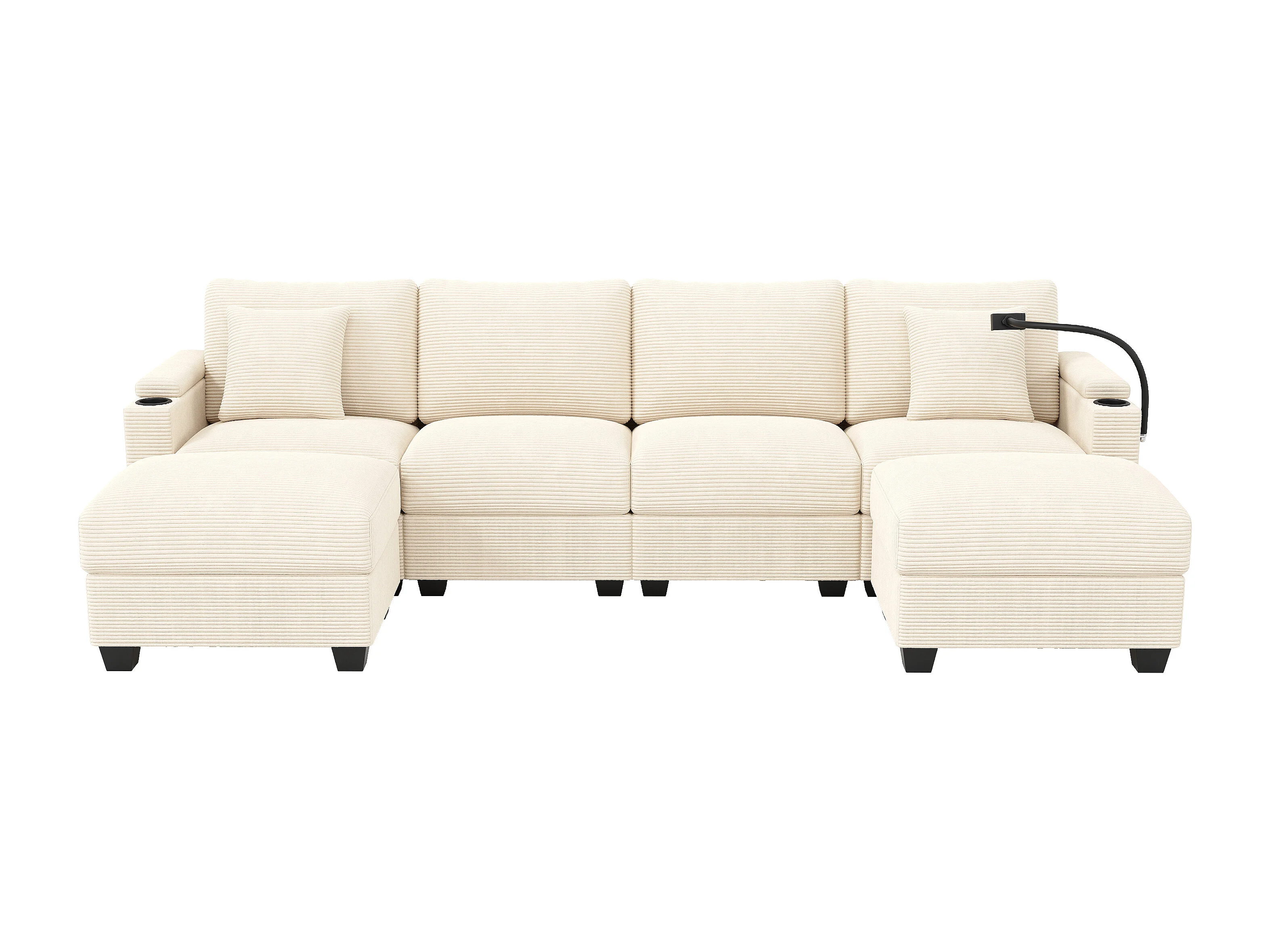 Canapé 6 places avec 2 poufs et rangement - Velours côtelé beige