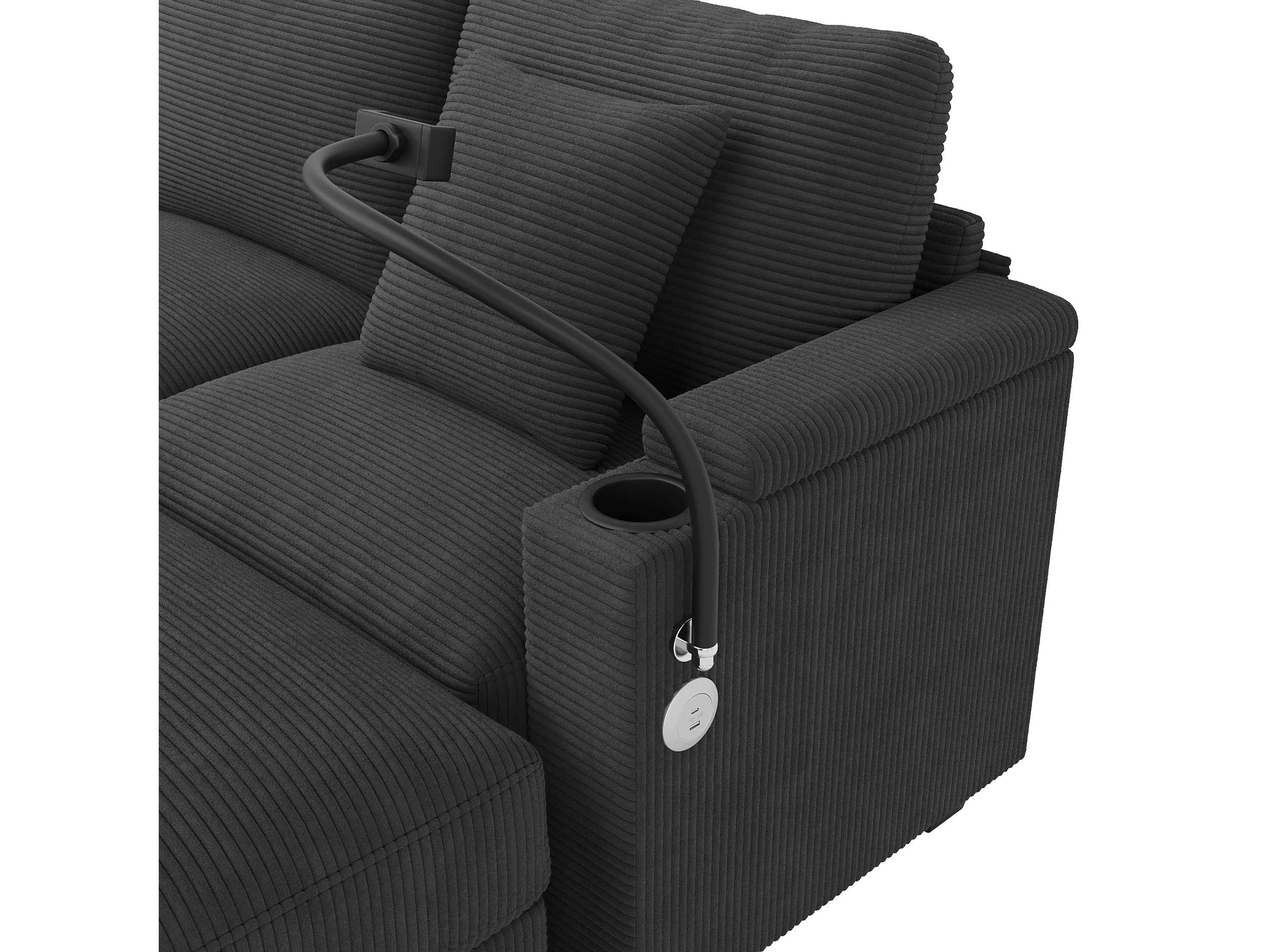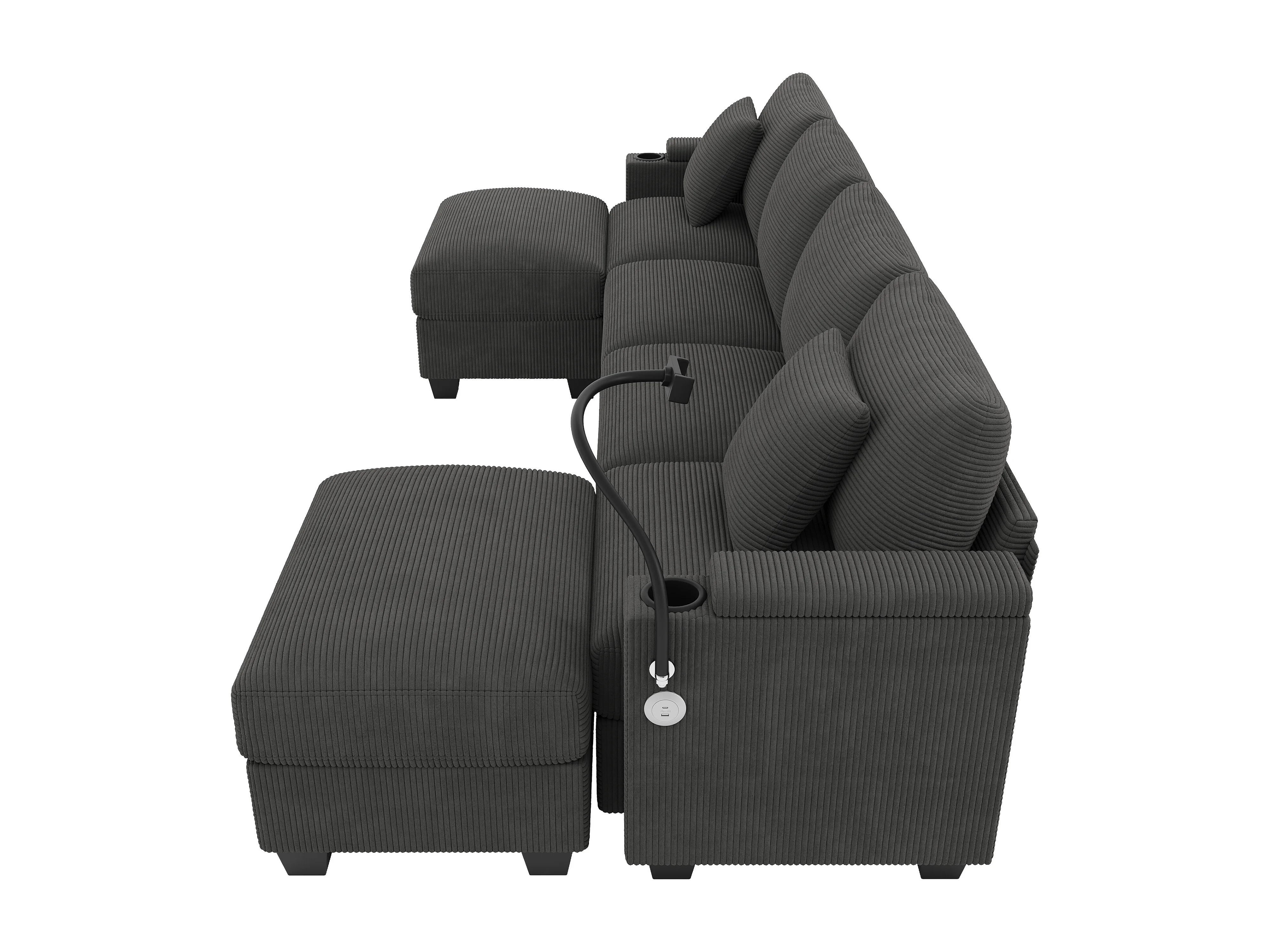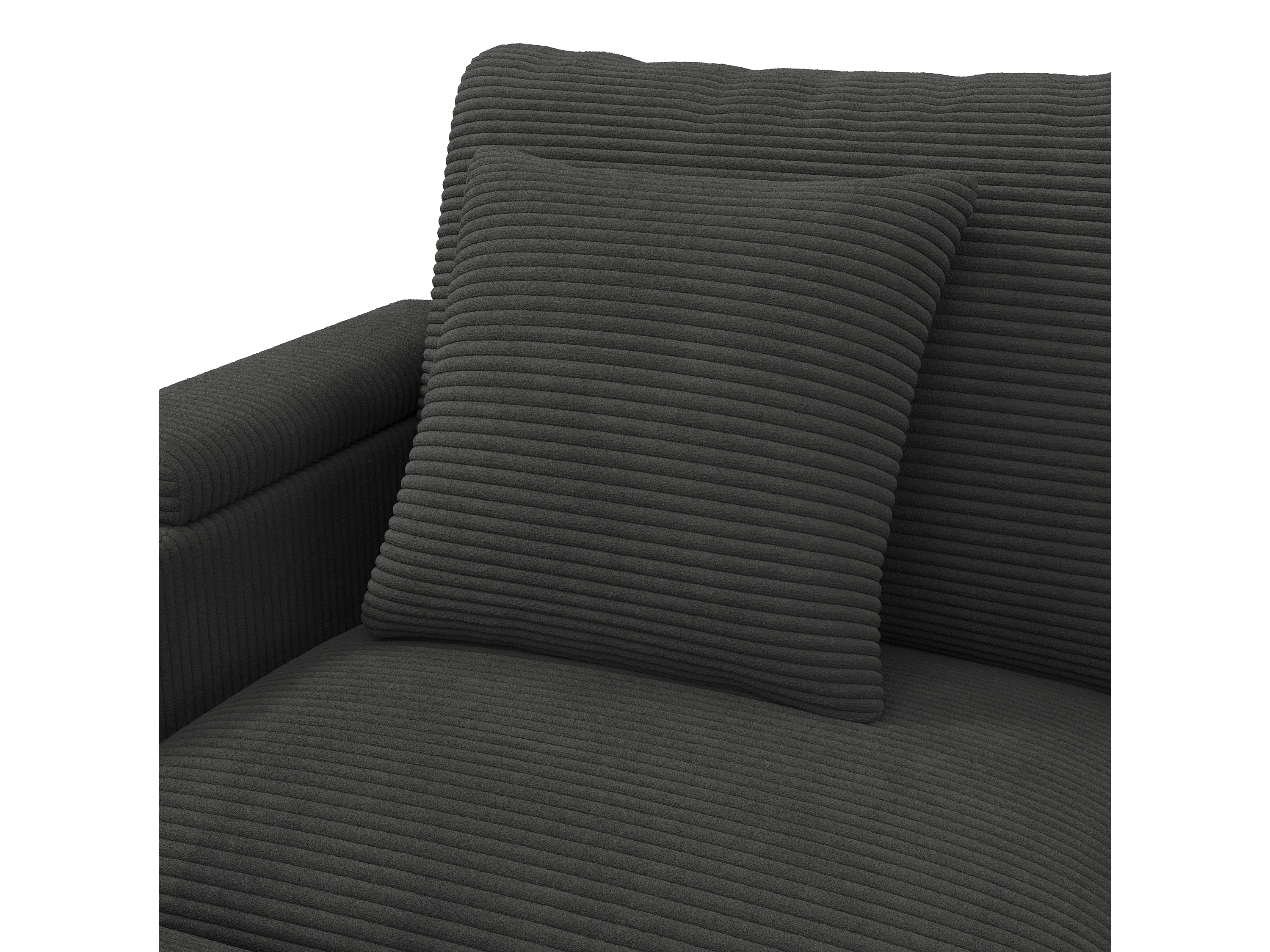 Canapé 6 places avec 2 poufs et rangement - Velours côtelé gris