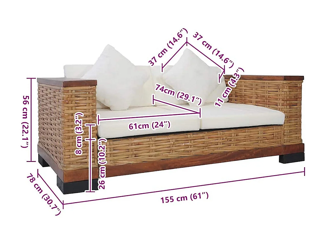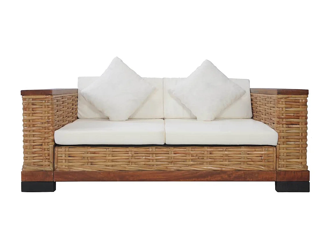Canapé à 2 places avec coussins Marron Rotin naturel