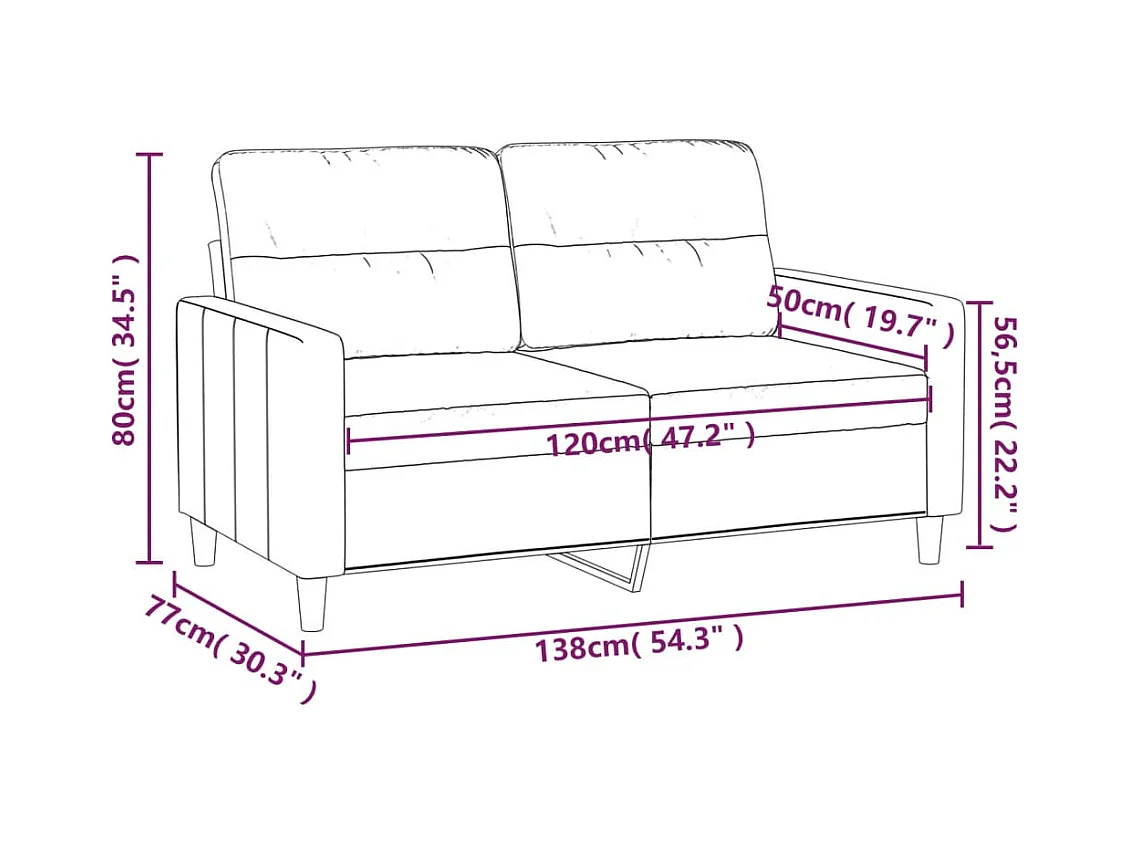 Canapé à 2 places Gris foncé 120 cm Tissu