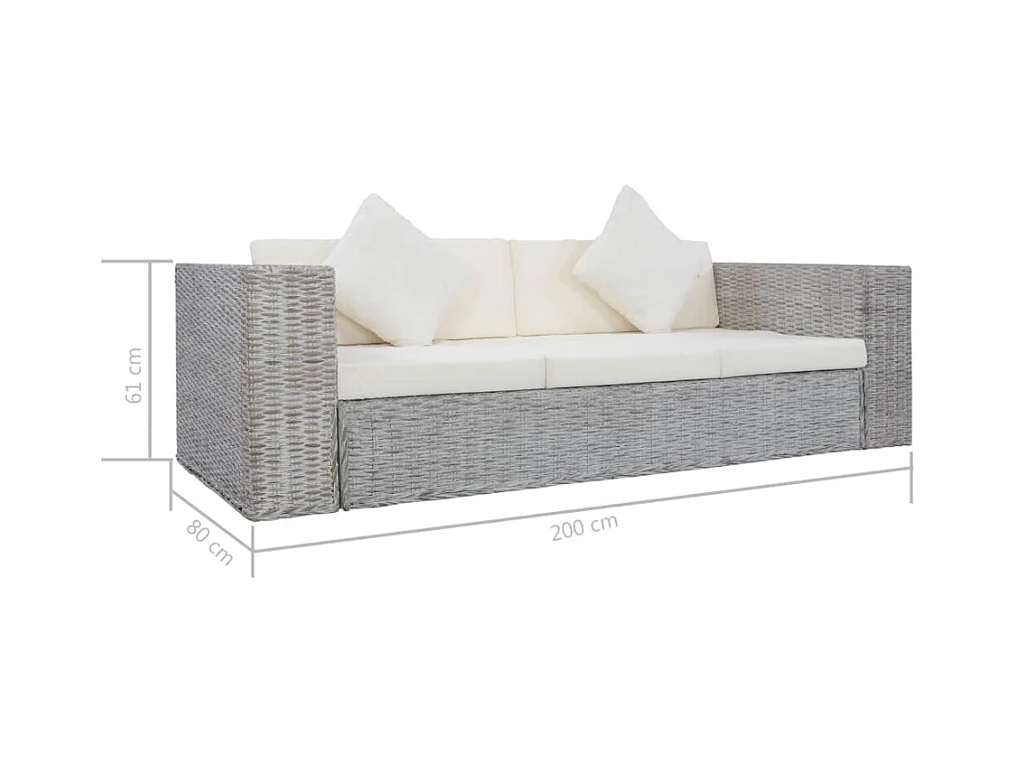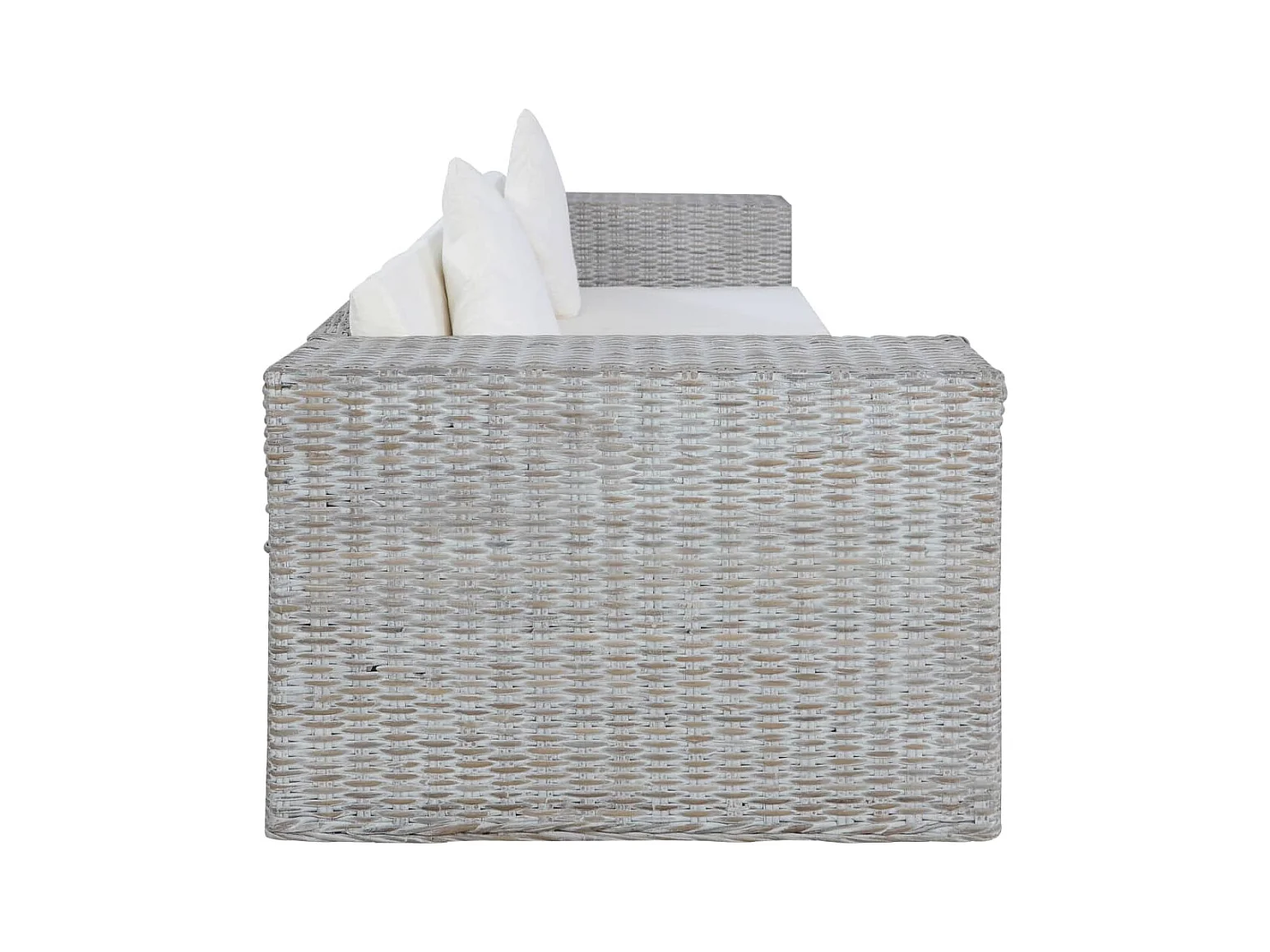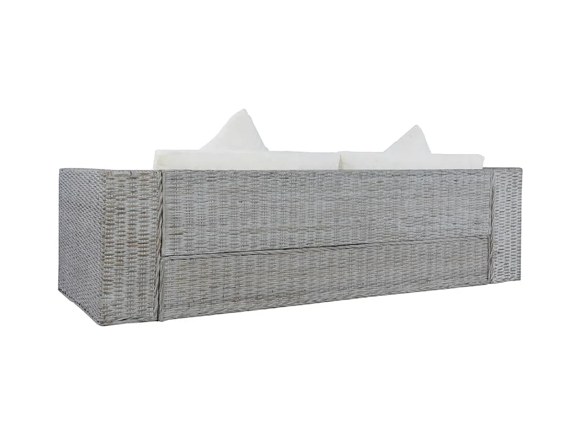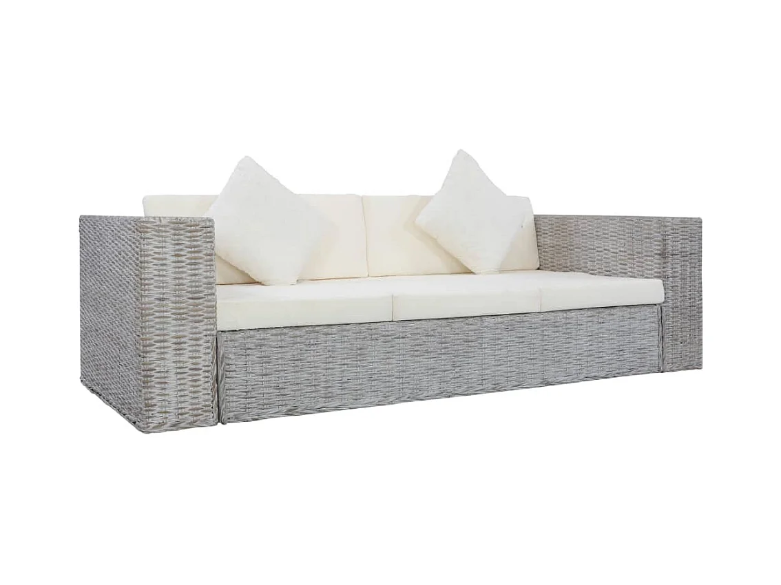 Canapé à 3 places avec coussins Gris Rotin naturel