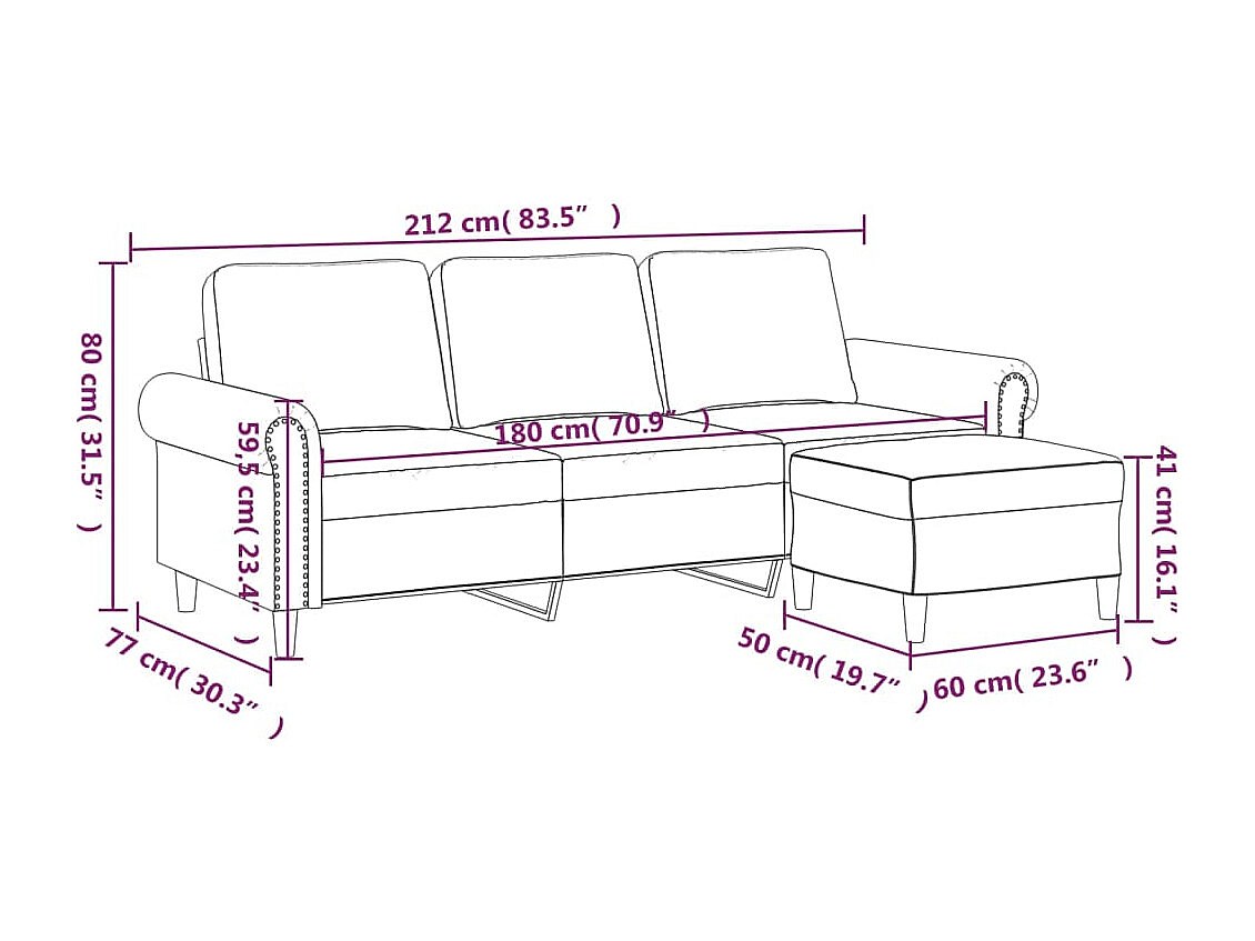 Canapé à 3 places avec repose-pieds Bleu 180 cm Velours
