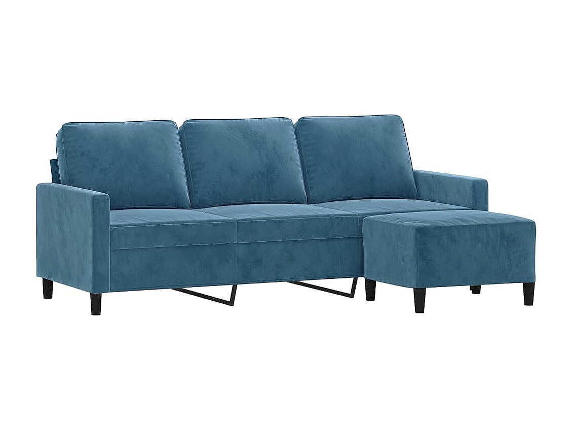 Canapé à 3 places avec repose-pieds Bleu 180 cm Velours