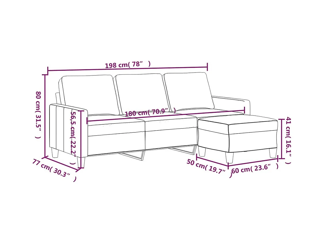 Canapé à 3 places avec repose-pieds Cappuccino 180cm Similicuir