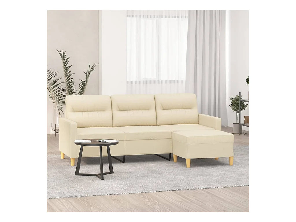Canapé à 3 places avec repose-pieds Crème 180 cm Tissu
