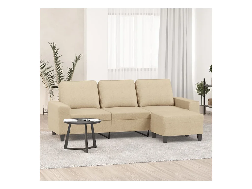 Canapé à 3 places avec repose-pieds Crème 180 cm Tissu FR85682