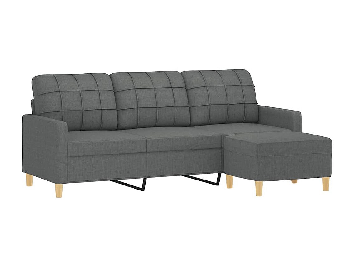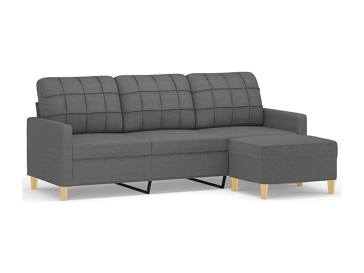 Canapé à 3 places avec repose-pieds Gris foncé 180 cm Tissu