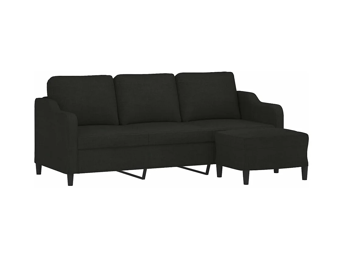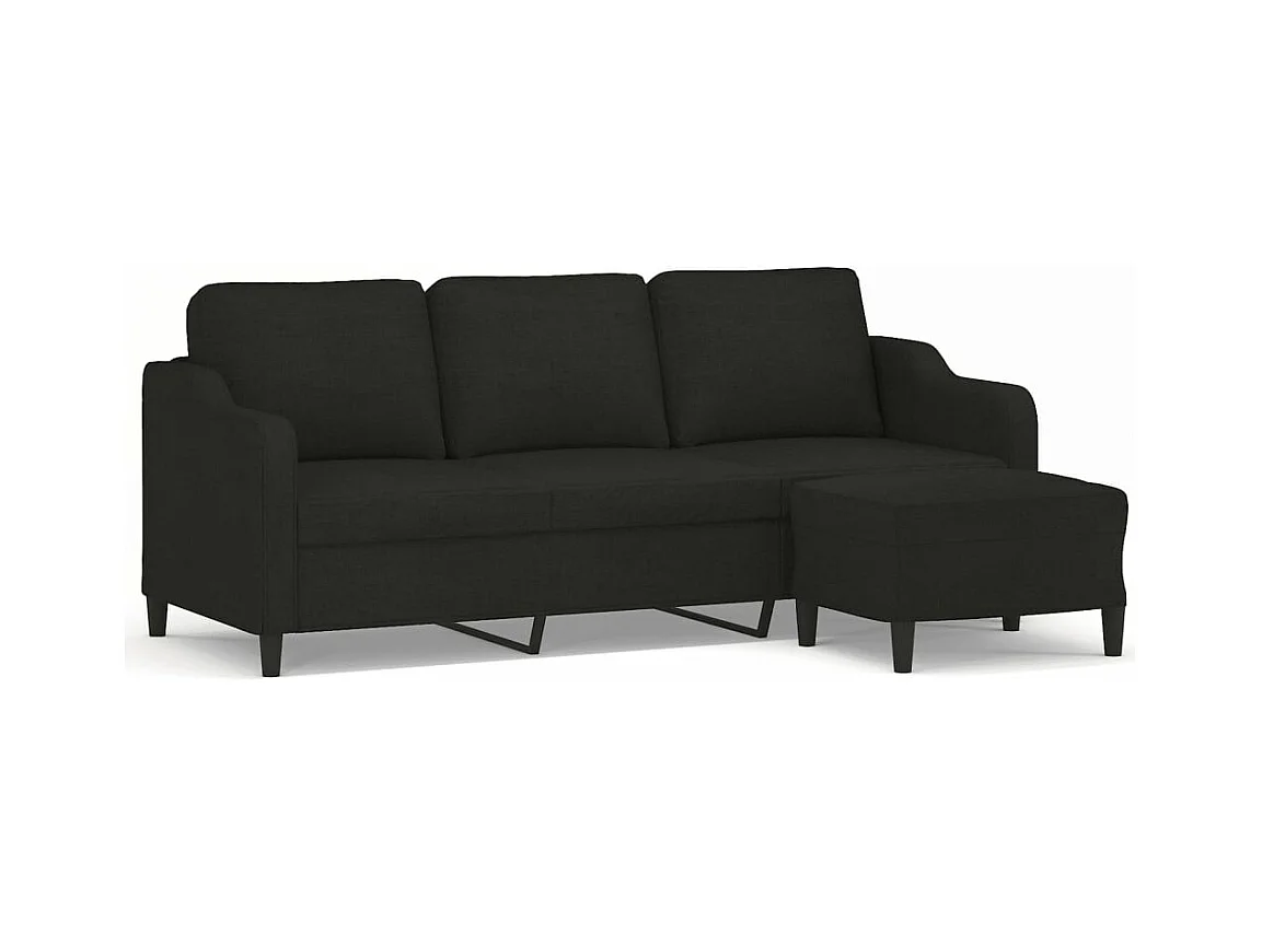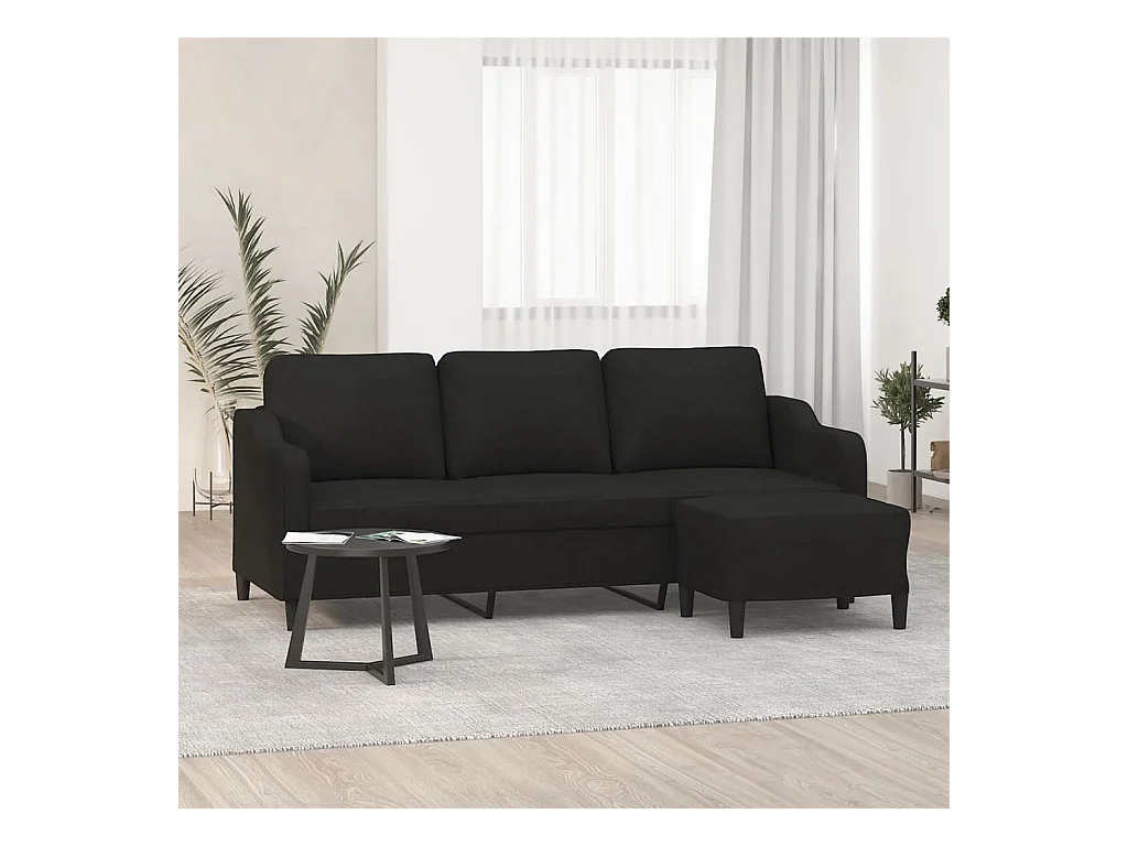 Canapé à 3 places avec repose-pieds Noir 180 cm Tissu FR77865