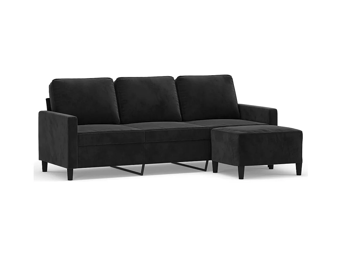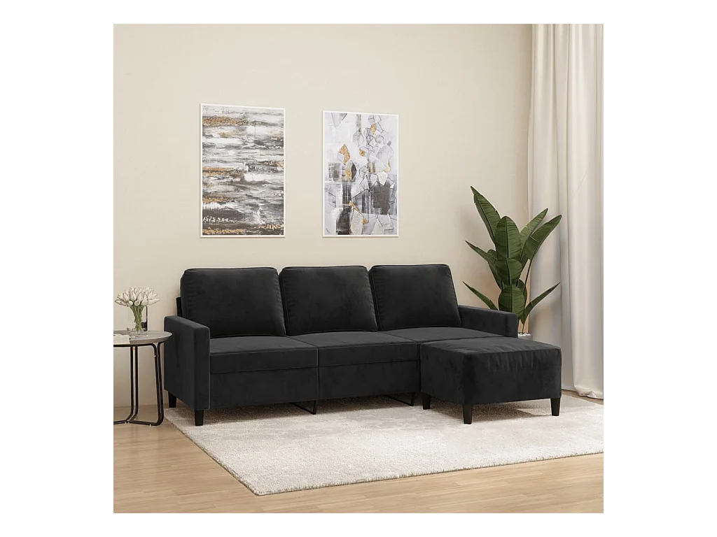 Canapé à 3 places avec repose-pieds Noir 180 cm Velours