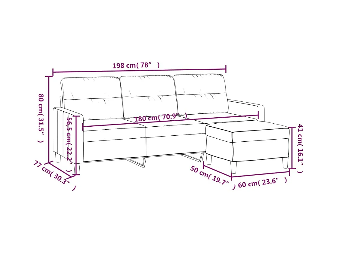 Canapé à 3 places avec repose-pieds Taupe 180 cm Tissu