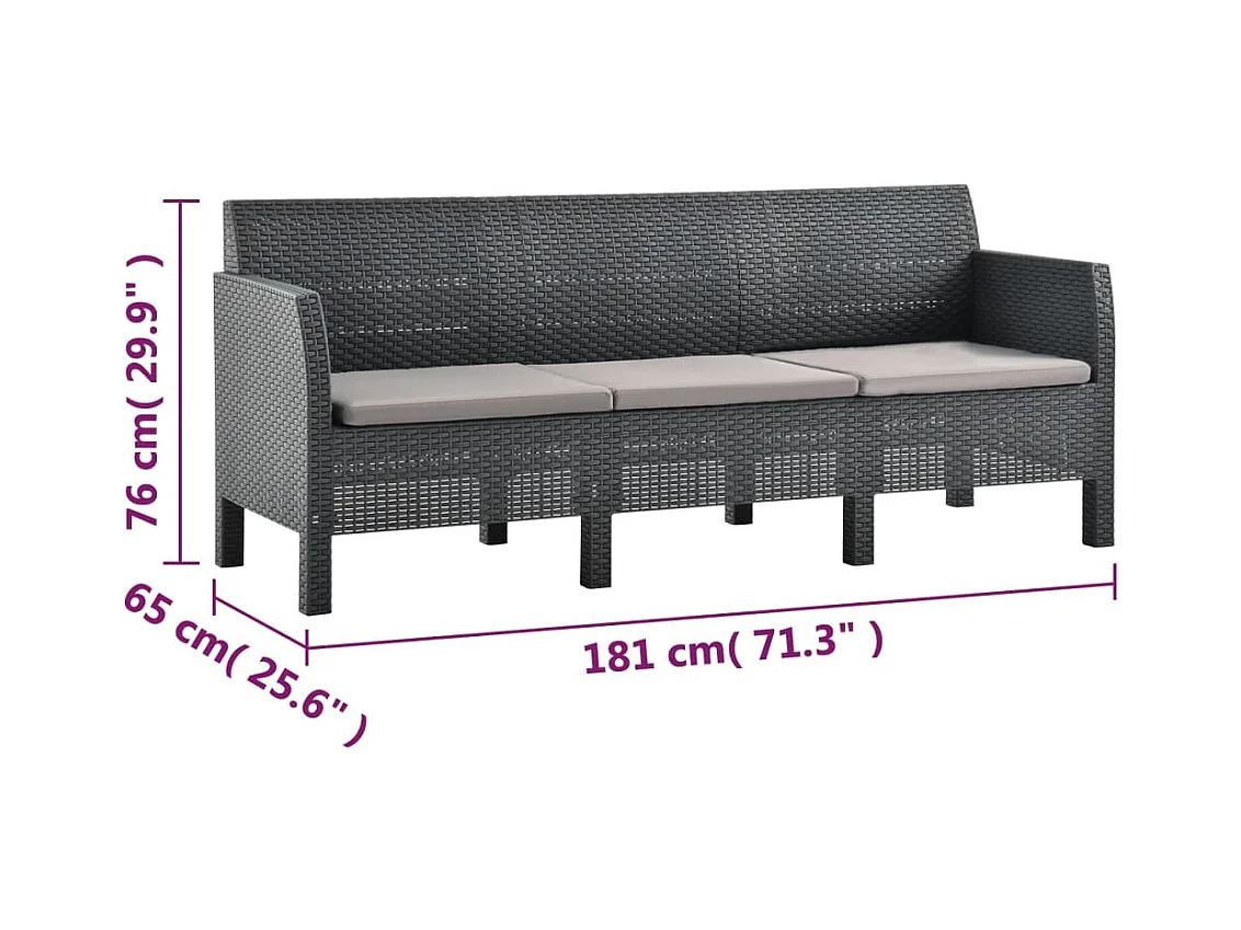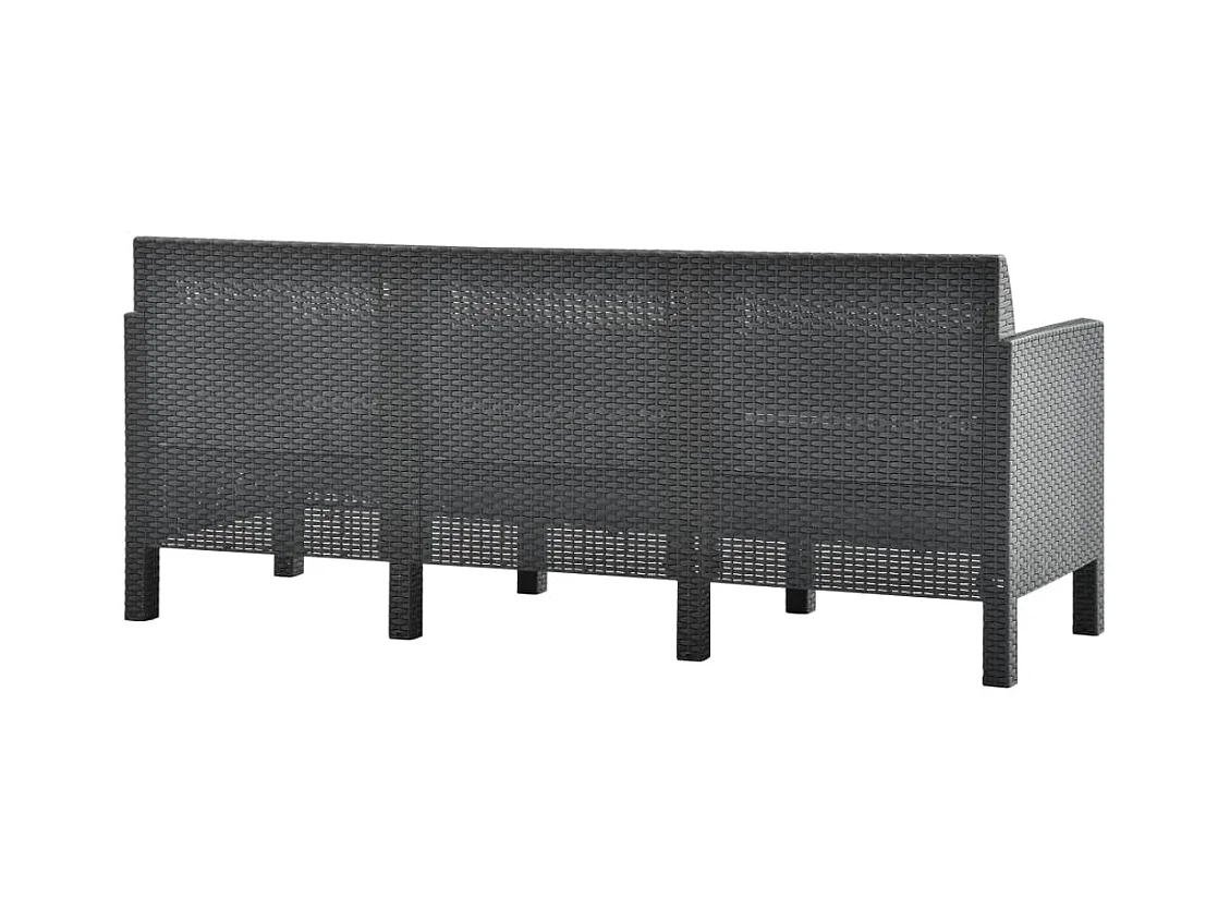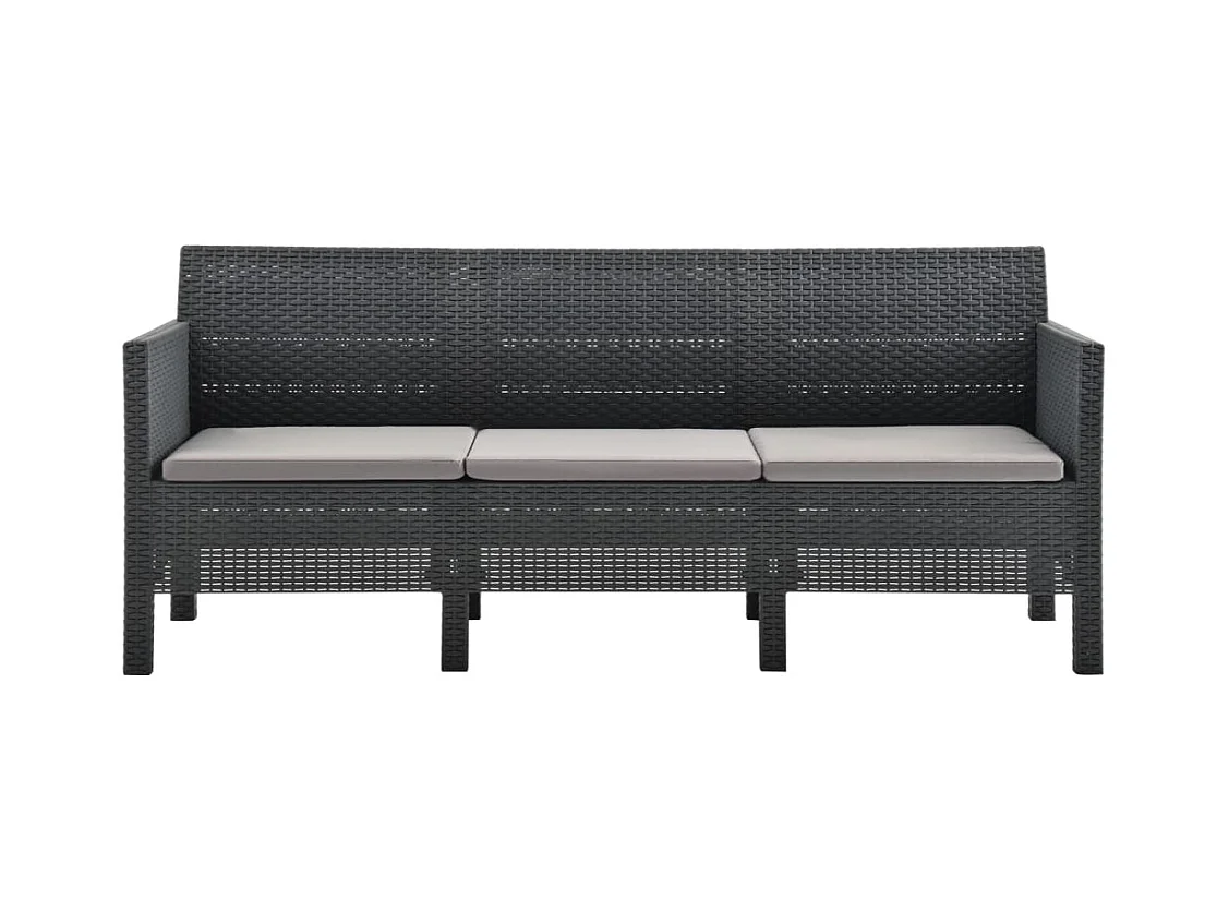 Canapé à 3 places de jardin avec coussins Anthracite PP Rotin