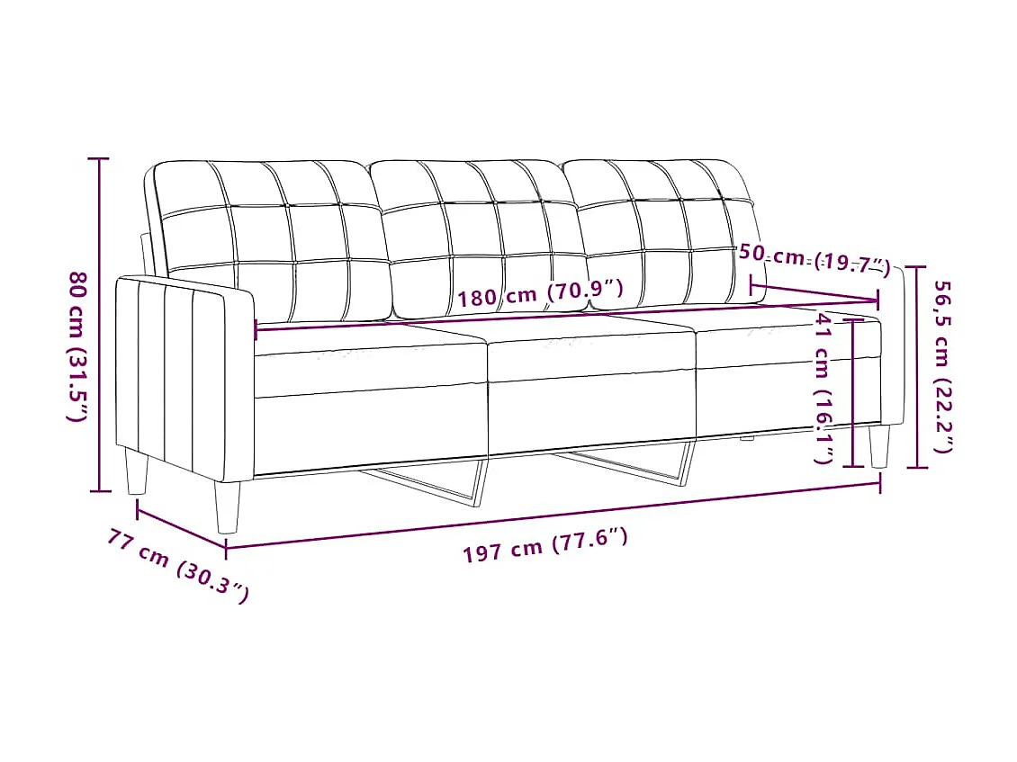 Canapé à 3 places Rouge bordeaux 180 cm Velours