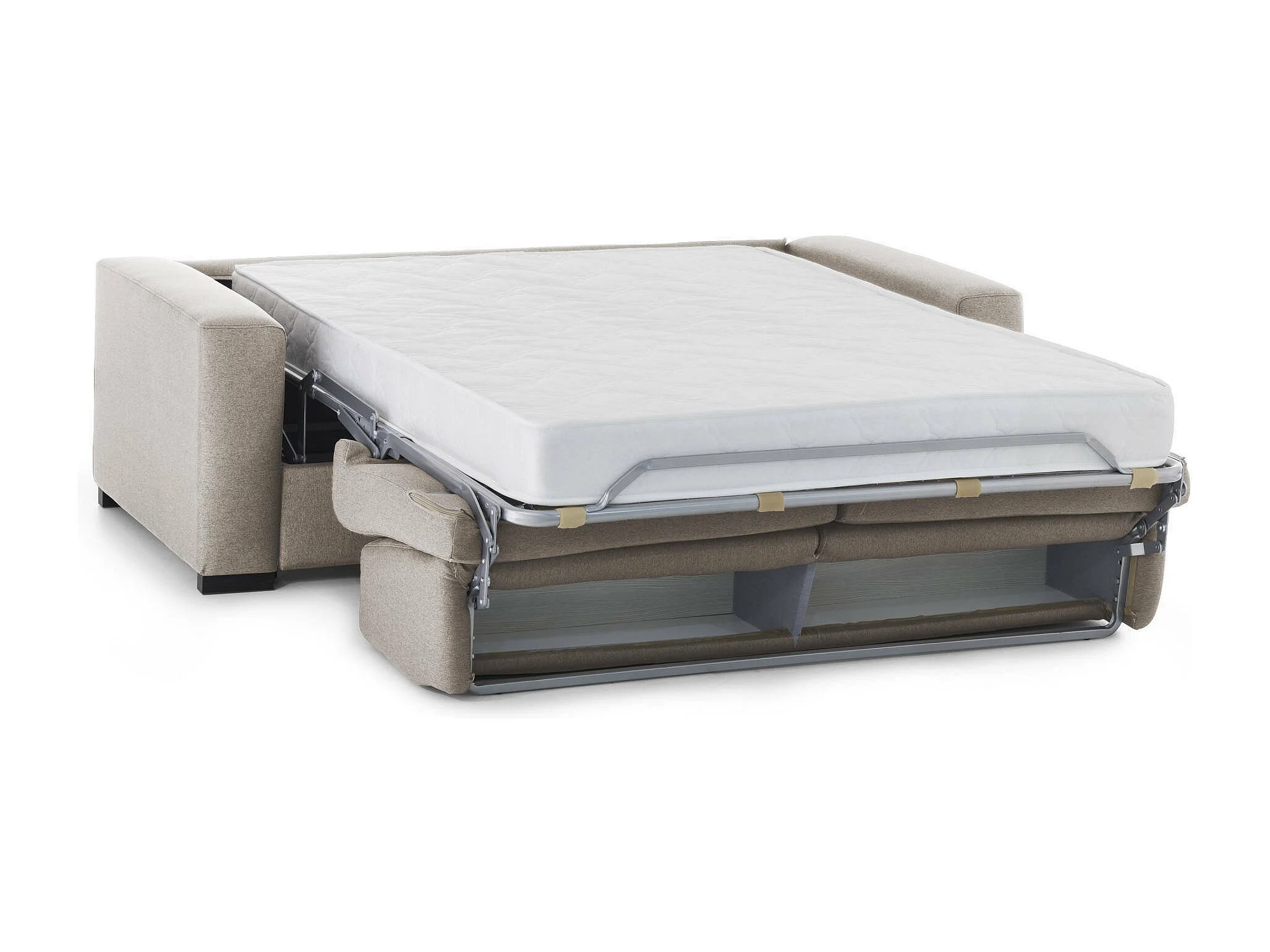 Dabakah Canapé-lit, canapé 3 places, 100% Made in Italy, Canapé de salon à ouverture pivotante, en tissu rembourré, avec accoudoirs fins, 200x95h90 cm, Taupe
