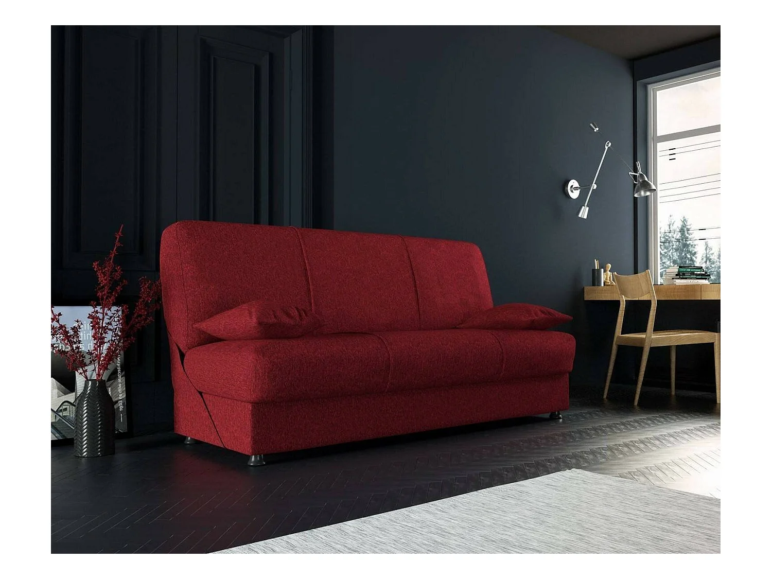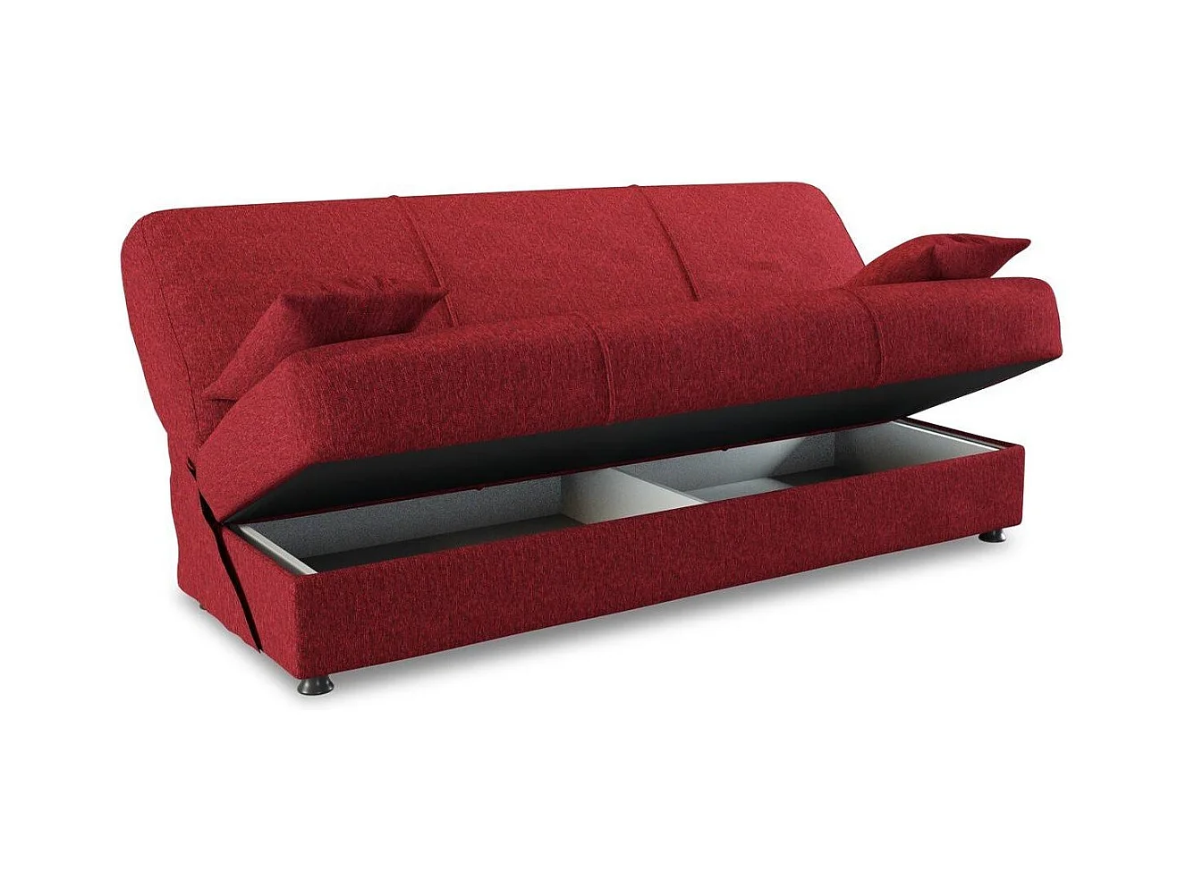Canapé Alvaro, Canapé conteneur 3 places avec 2 coussins inclus, Canapé de salon en tissu rembourré avec ouverture clic-clac, 180x81h90 cm, Rouge