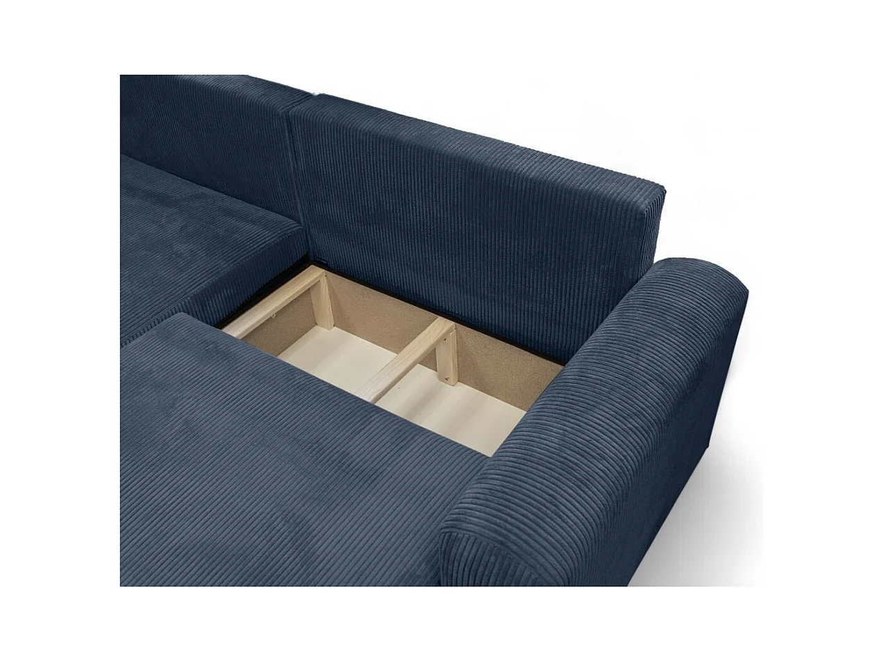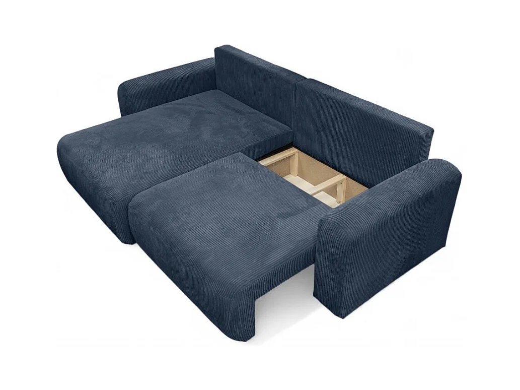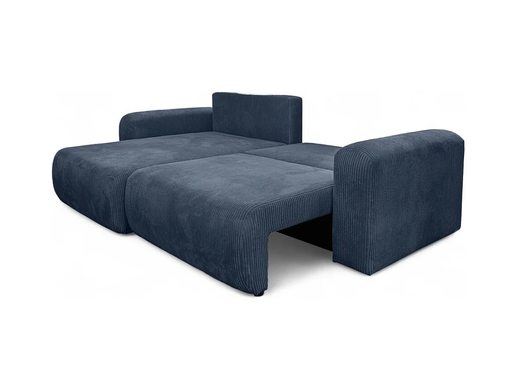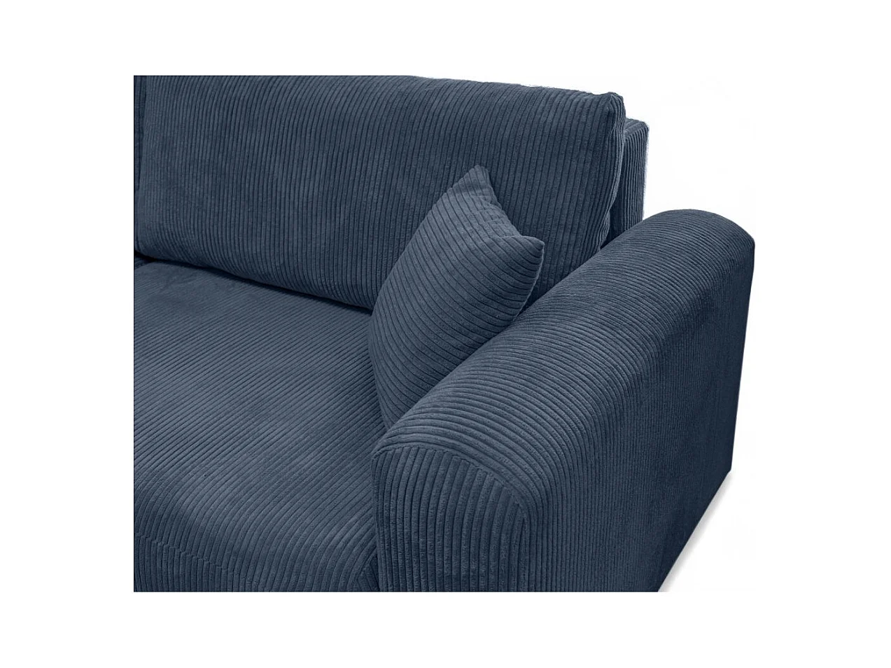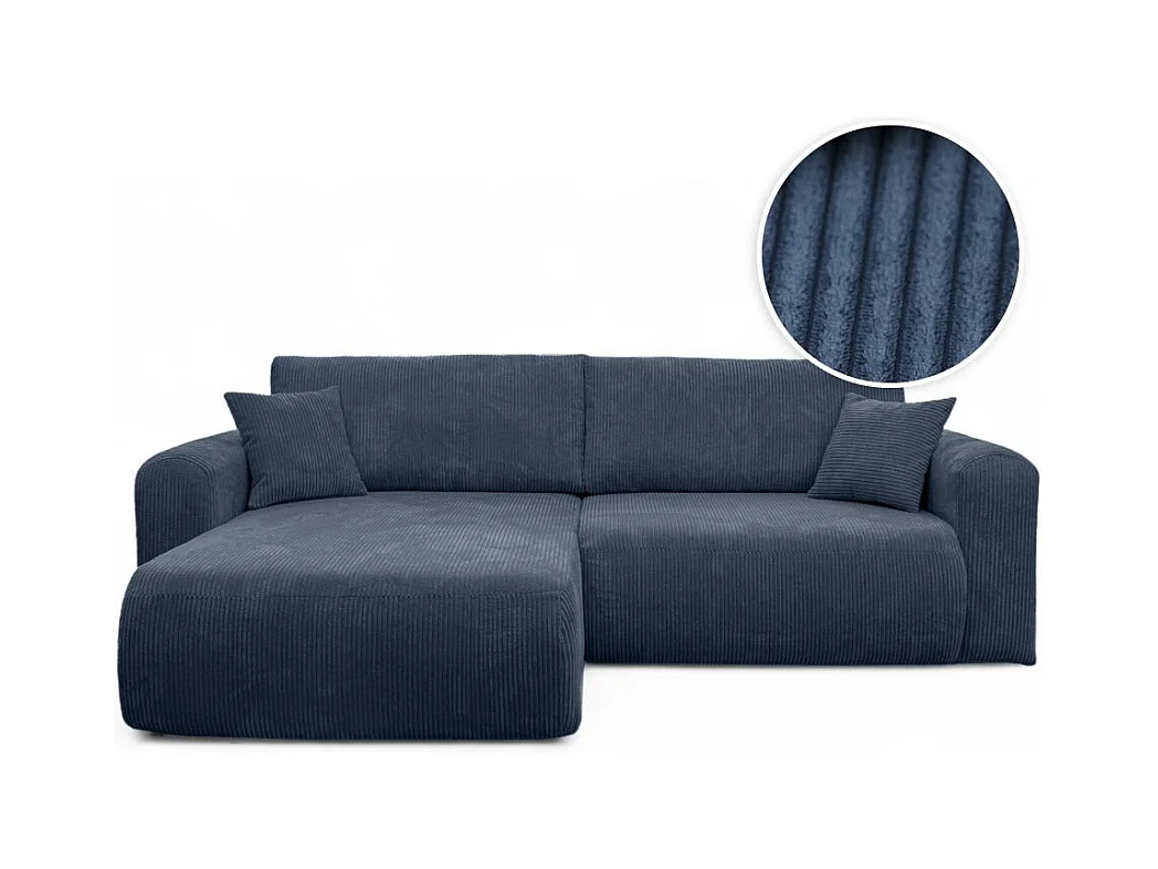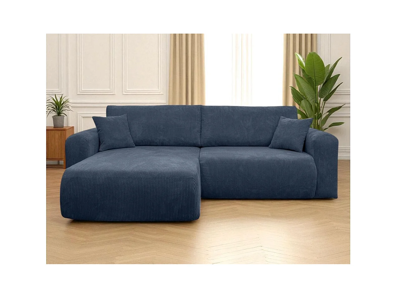 Canapé ALYA d'angle compacte réversible et convertible 4 places en velours côtelé - Bleu foncé