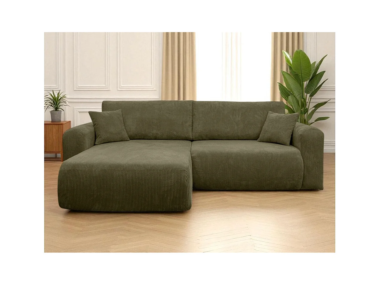 Canapé ALYA d'angle compacte réversible et convertible 4 places en velours côtelé - Vert kaki