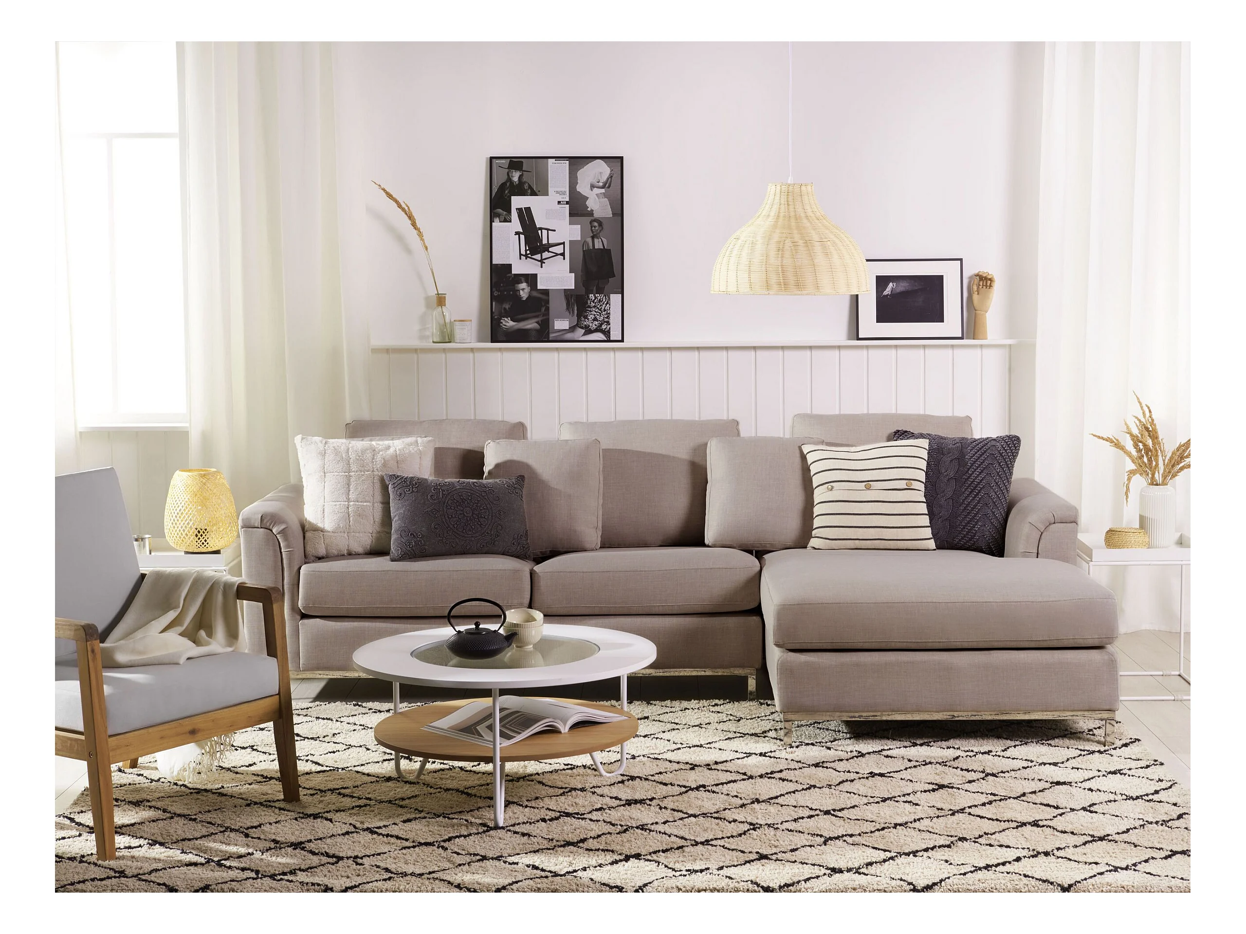 Canapé Angle à droite en Tissu Beige Dossier Matelassé Housses Amovibles Oslo