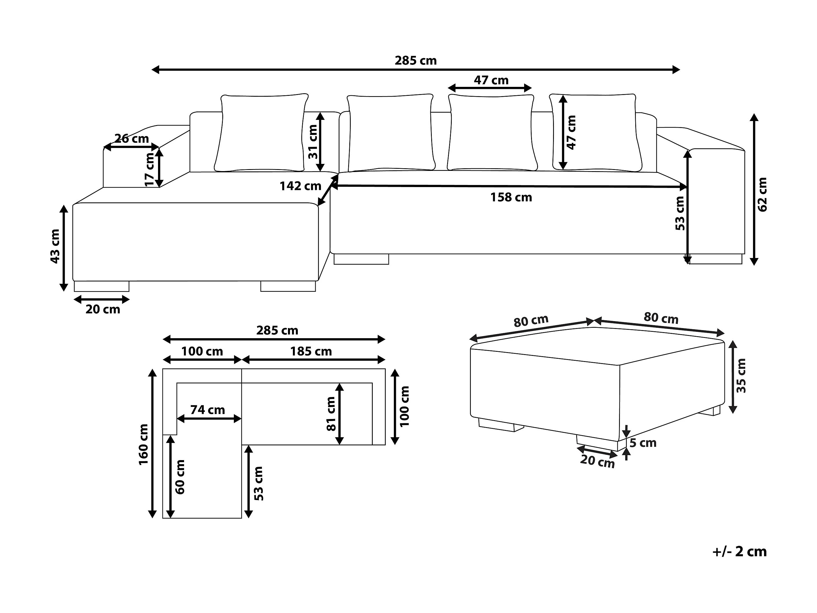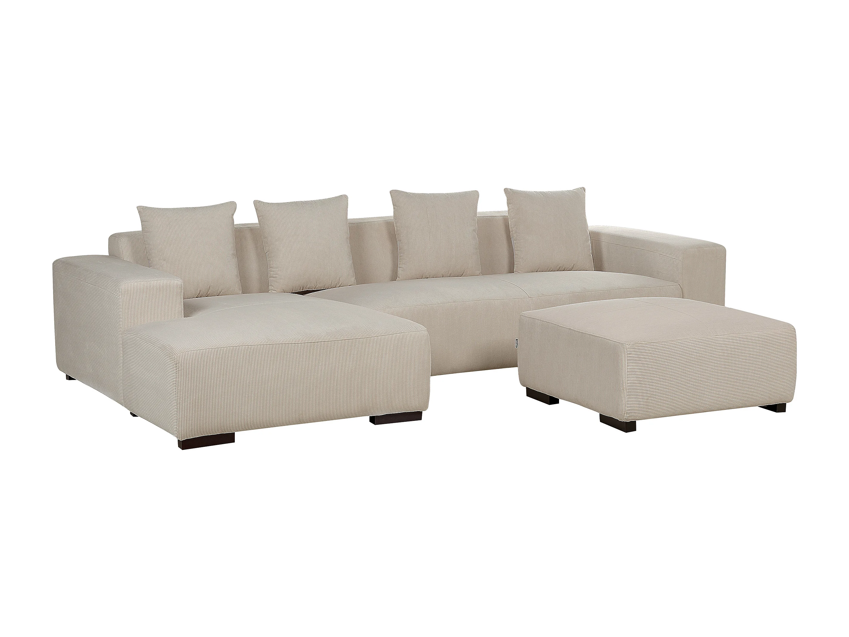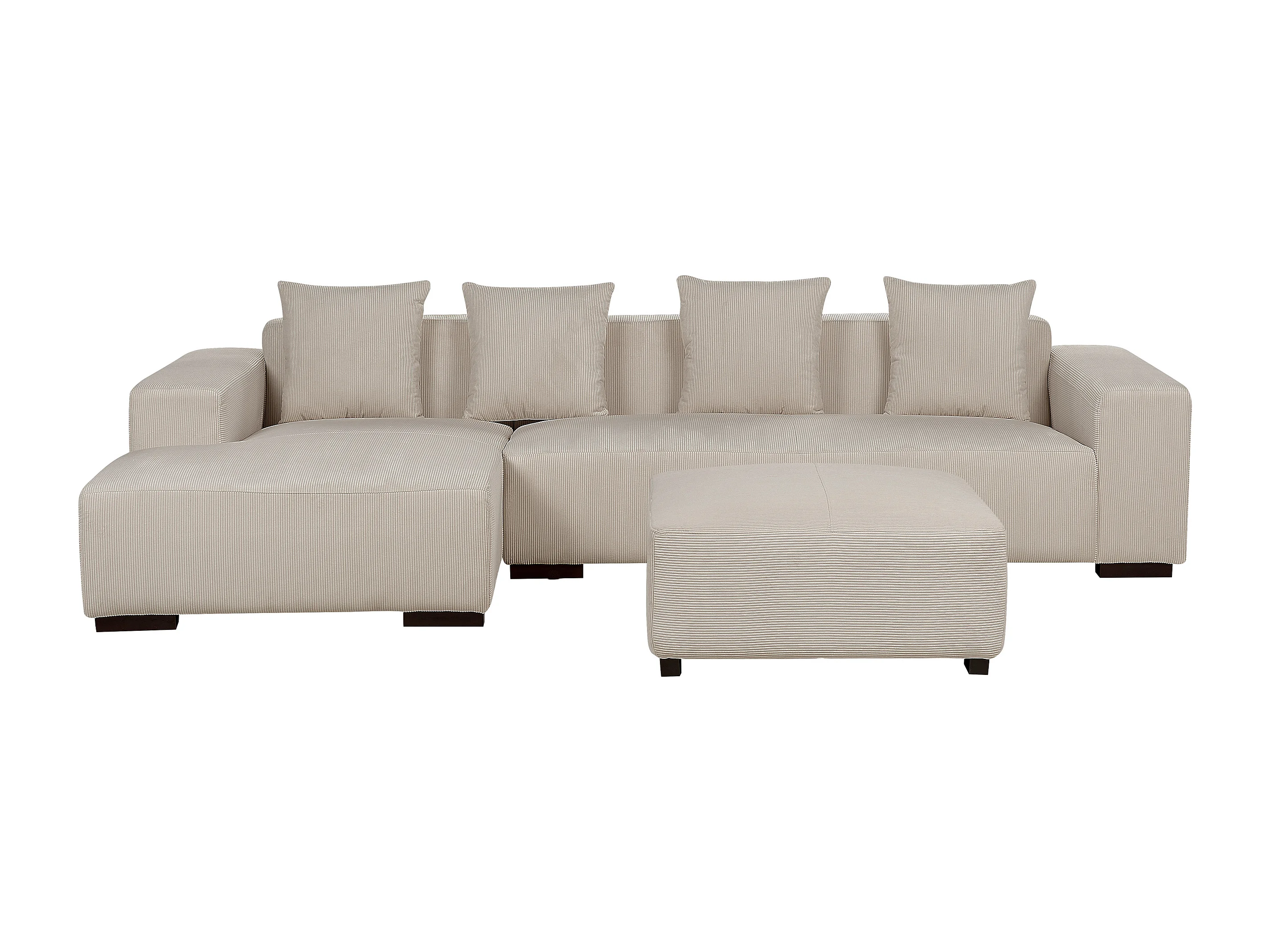 Canapé Angle à Droite 4 Places en Velours Côtelé Beige 4 Coussins Supplémentaires et Ottoman Lungo